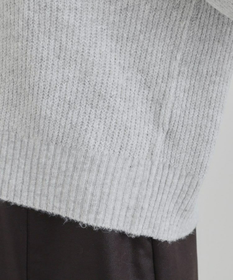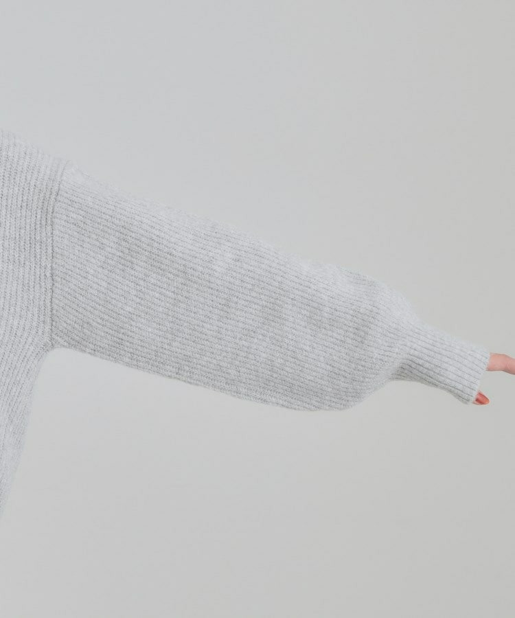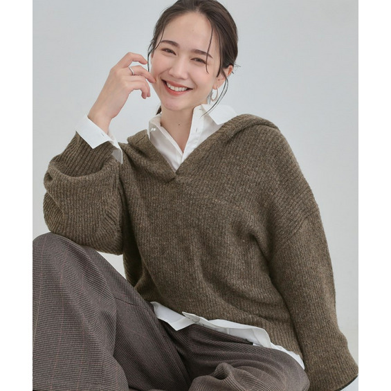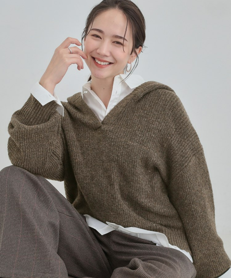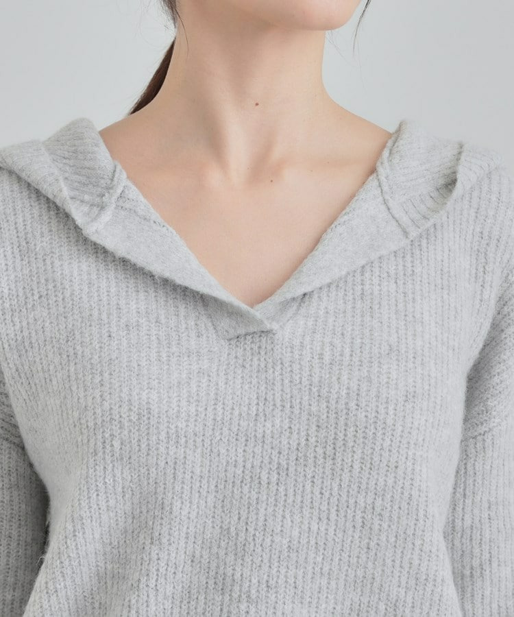 ふわっとした素材とざっくりとした畦編みがポイントのフードニット。