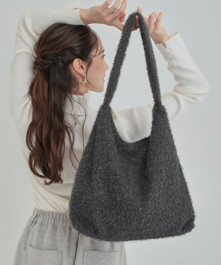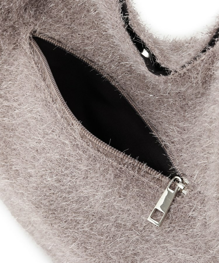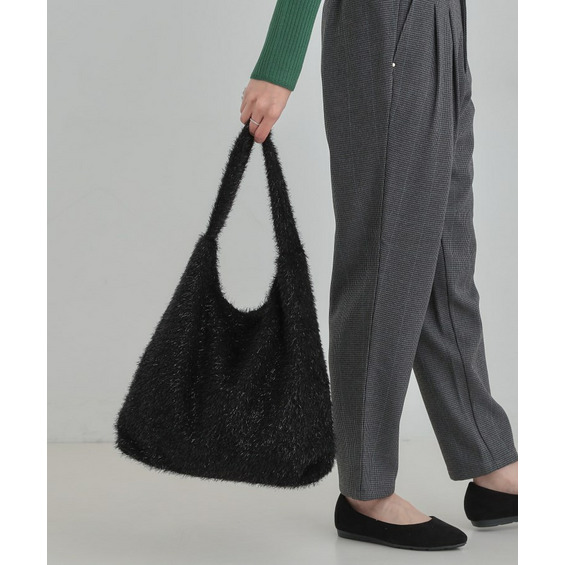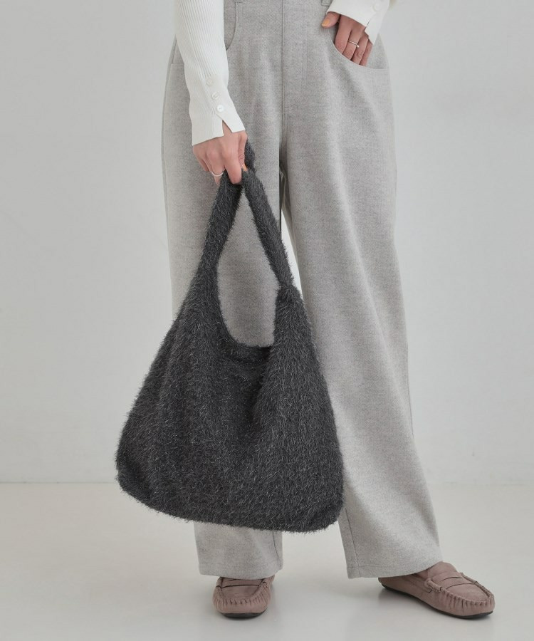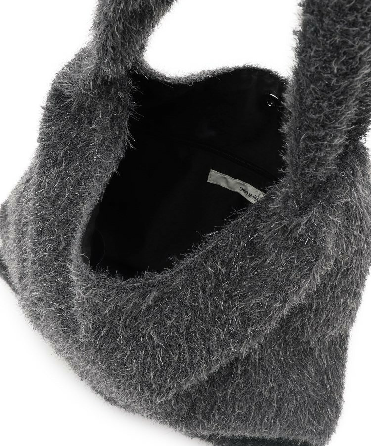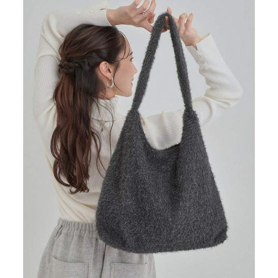 ふさふさとし生地にシルバーラメが混じっている生地を使った肩掛けのトートバッグです。