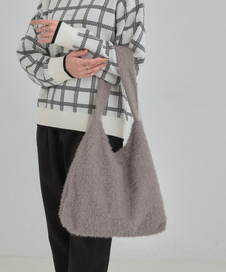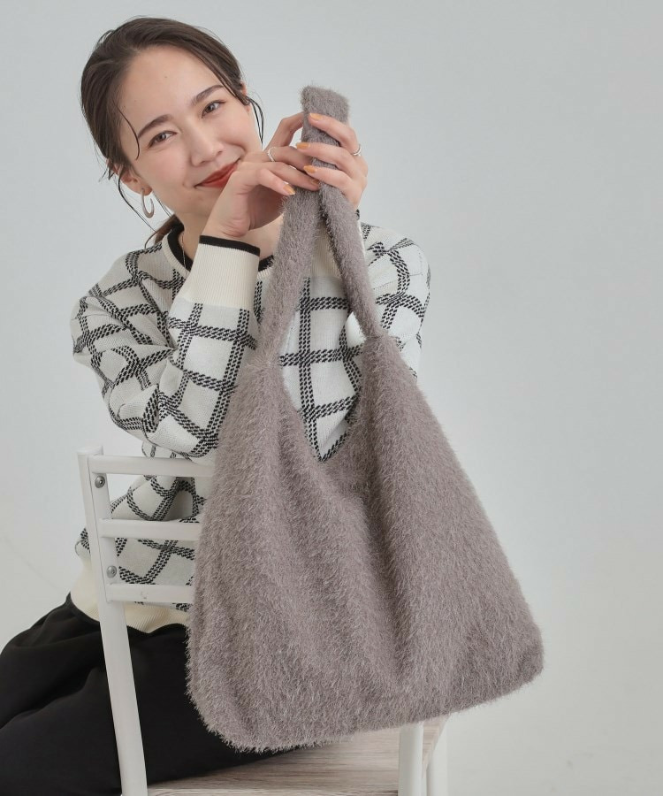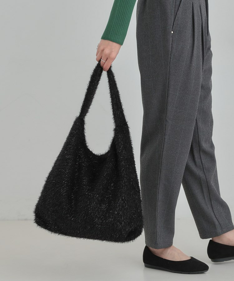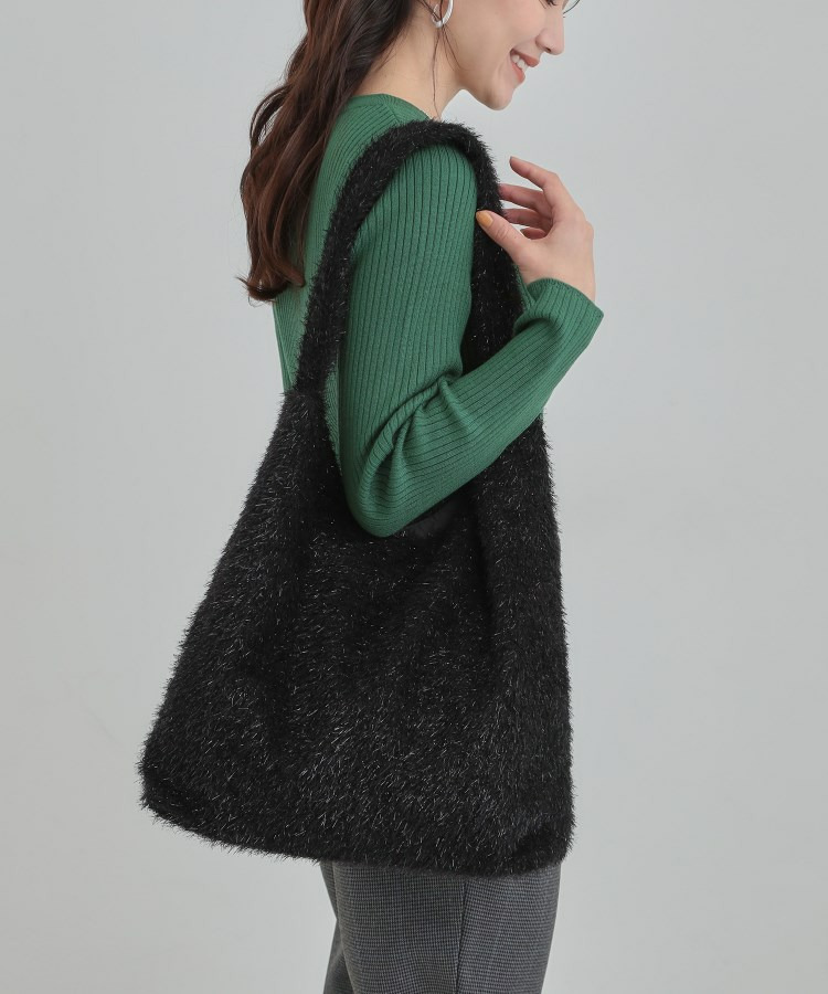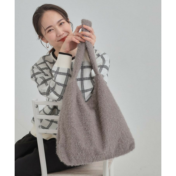 ふさふさとし生地にシルバーラメが混じっている生地を使った肩掛けのトートバッグです。