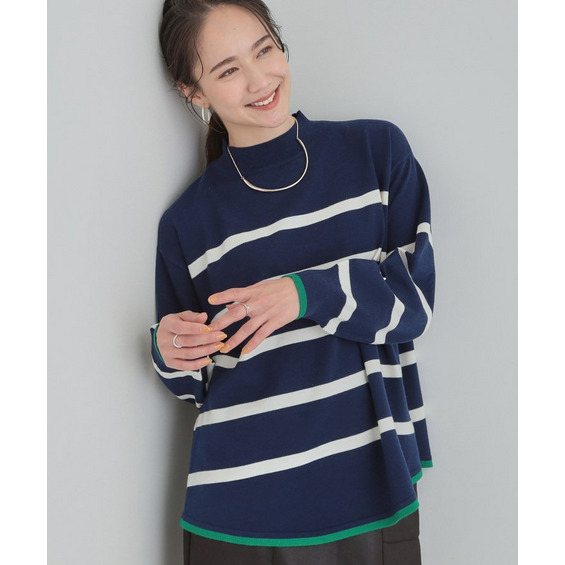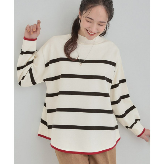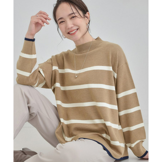 ゆるっとしたサイズ感、さりげない配色が大人かわいいニット。