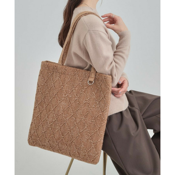 ラメ格子柄スクエアトートバッグ