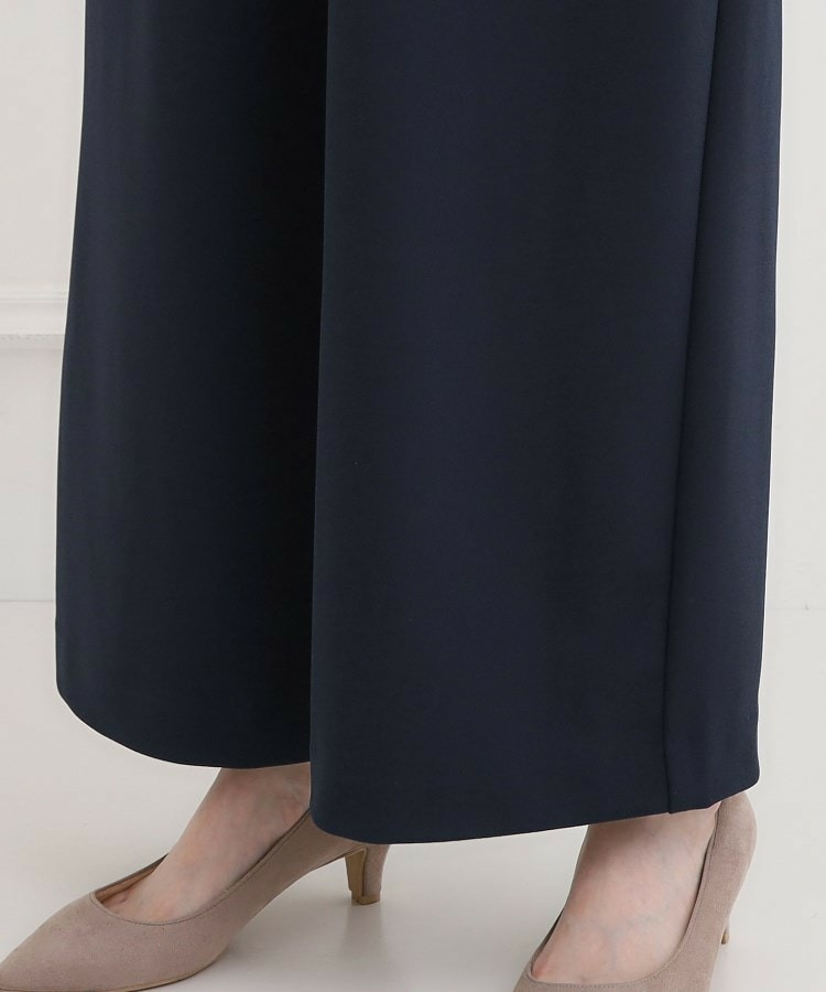 【洗濯機可/イージーケア/ストレッチ】きちんと楽に。カットジョーゼットワイドパンツ