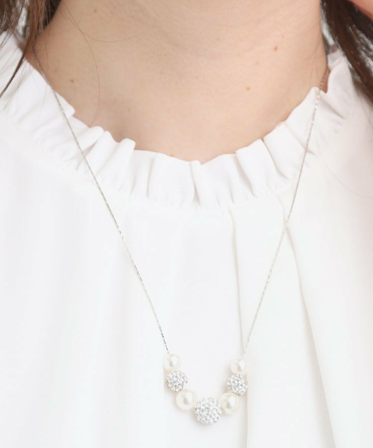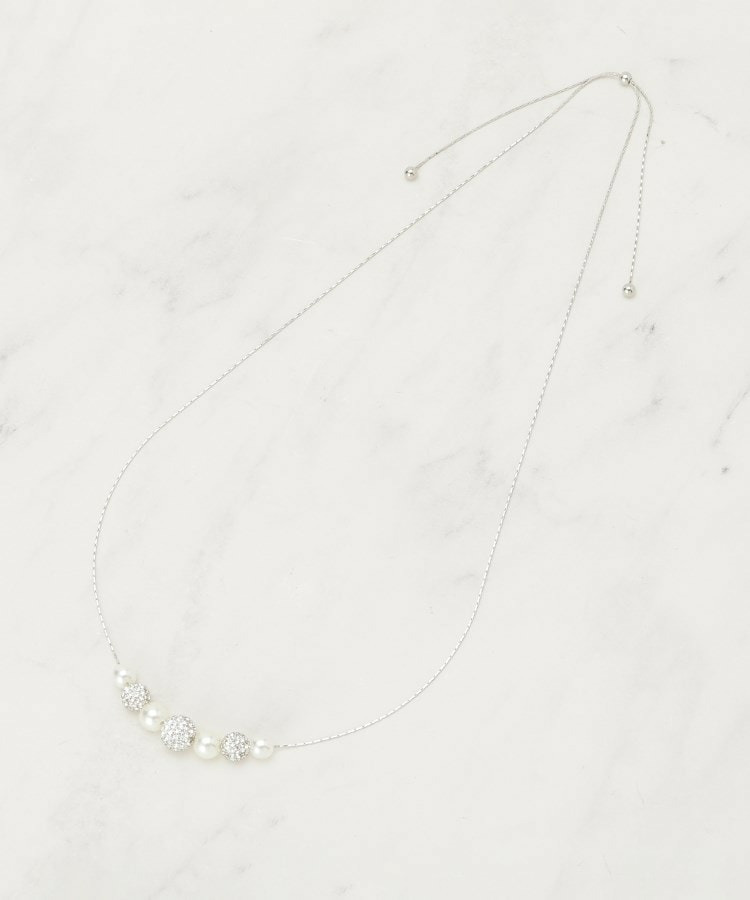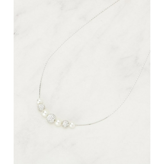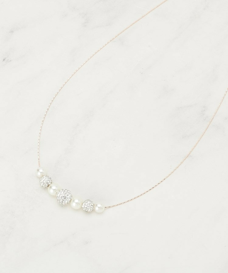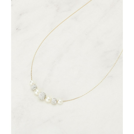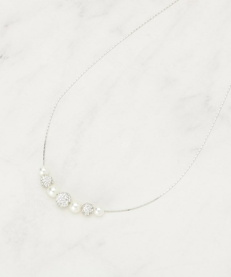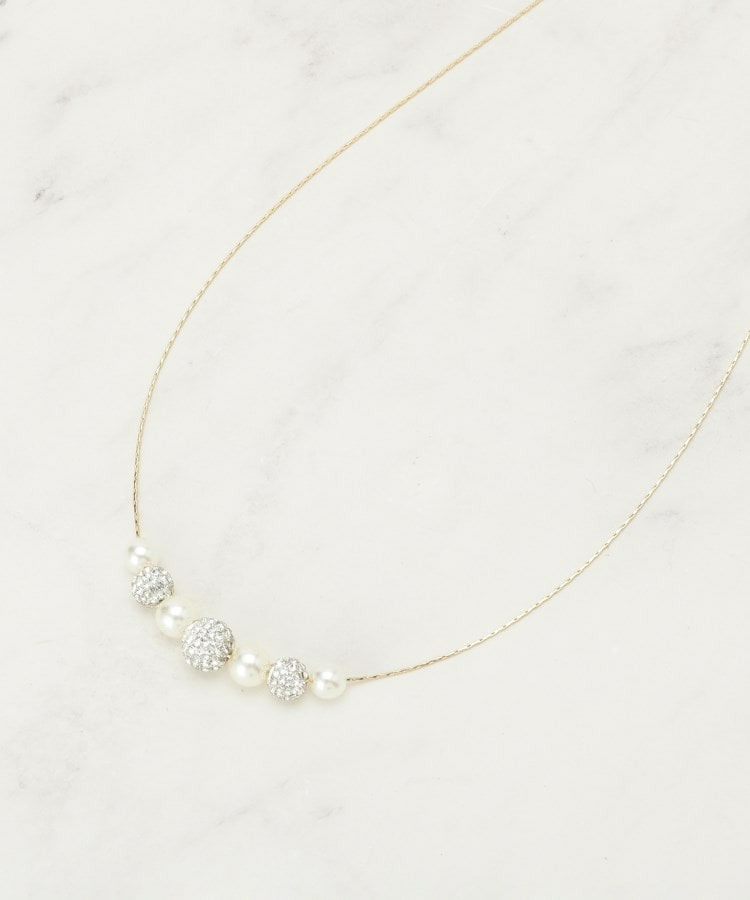 ボールにキラキラがちりばめられた煌びやかなパヴェボールとフェイクパールを組み合わせた、繊細で上品なネックレス。