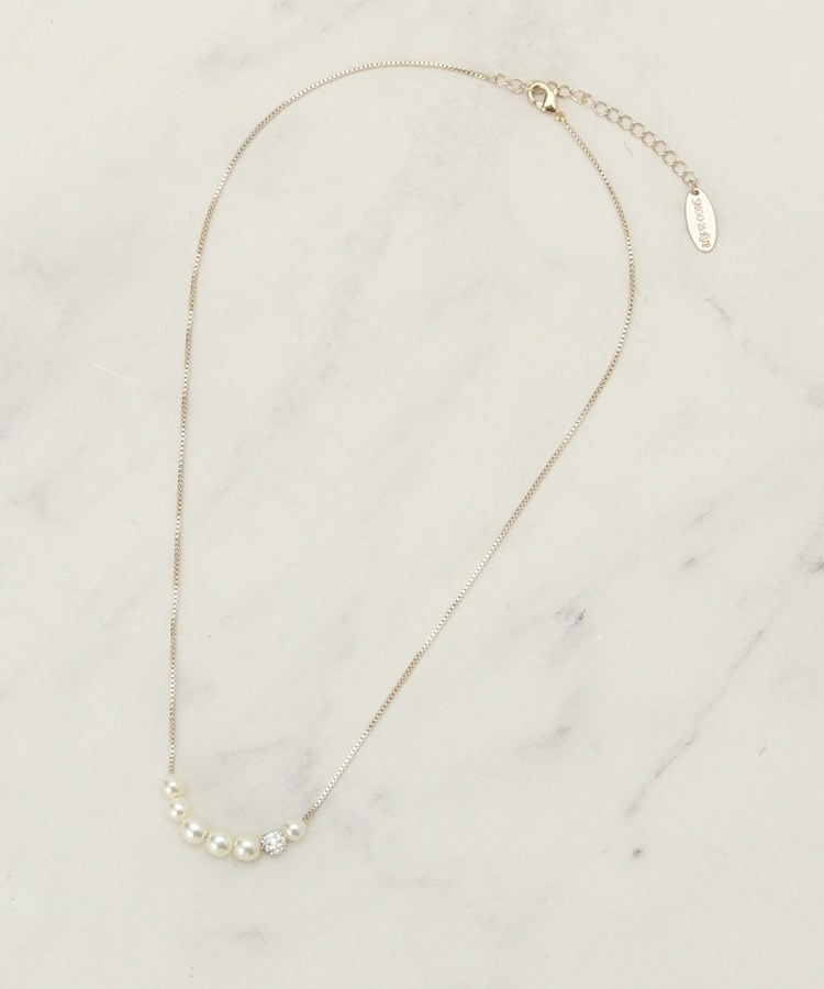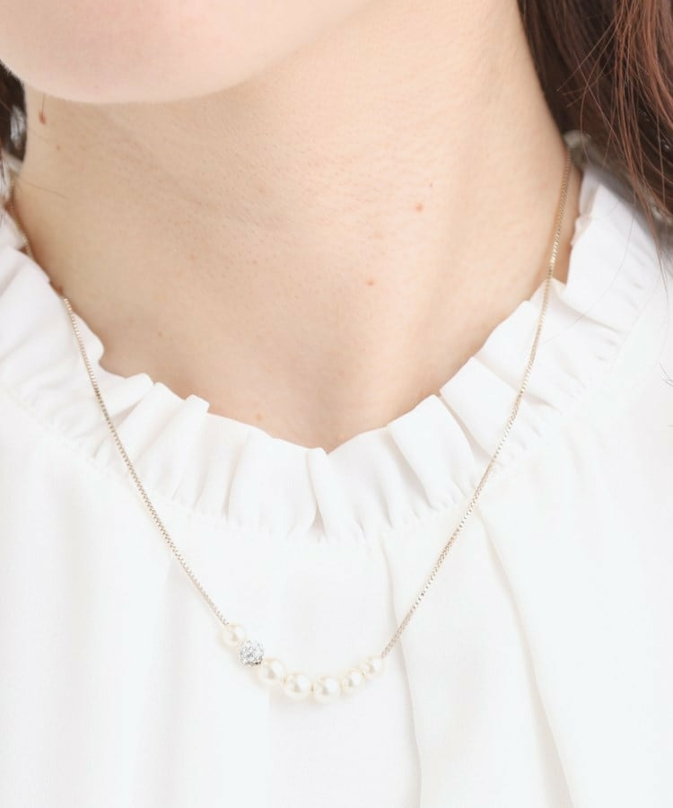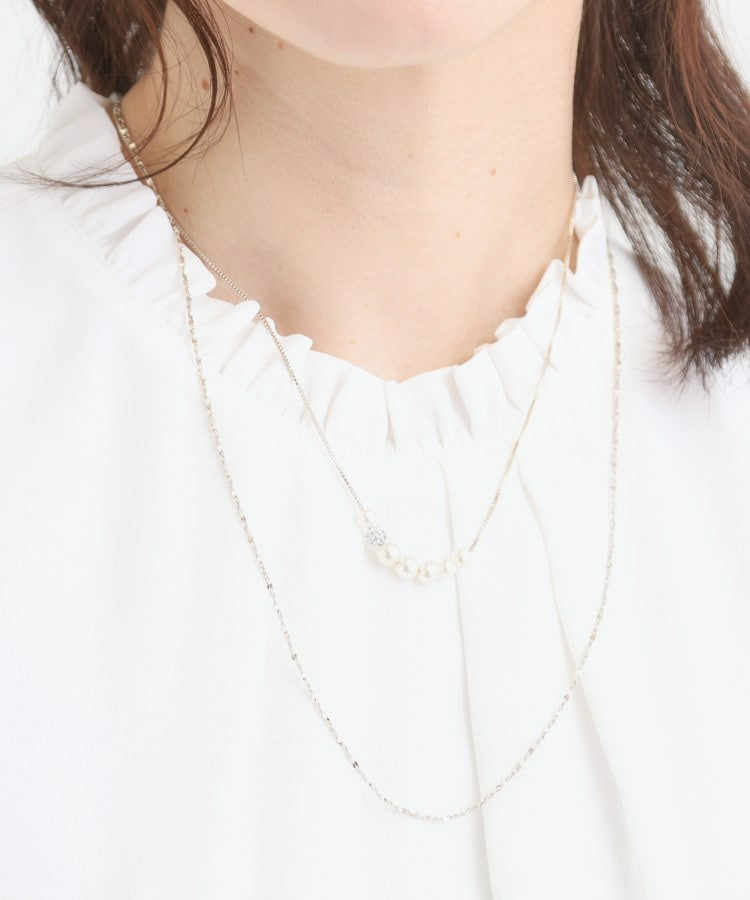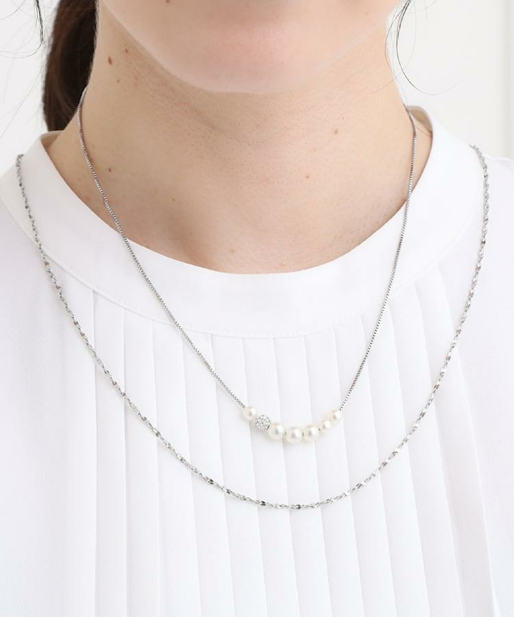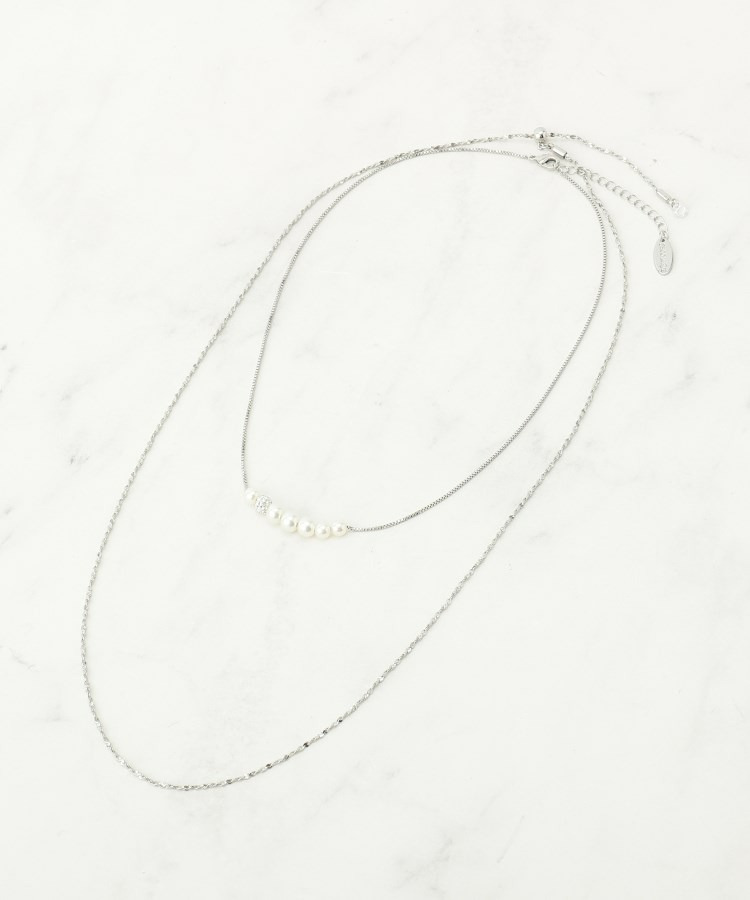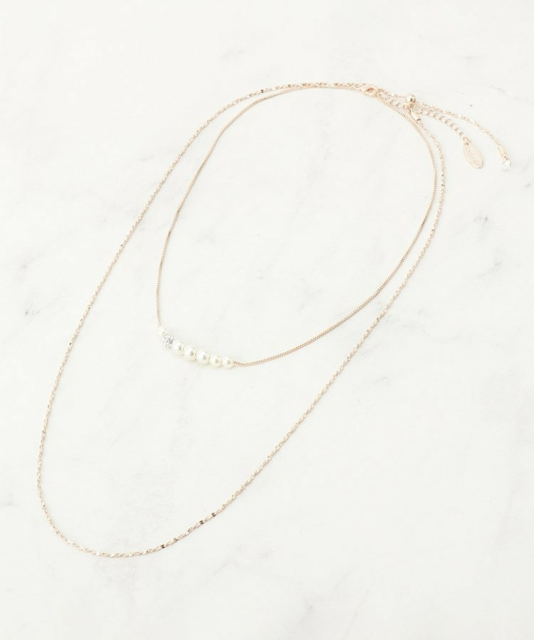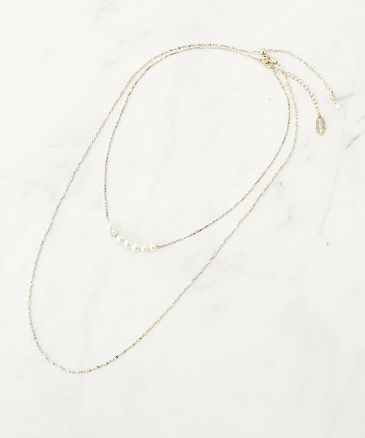 短いネックレスと長いネックレスの2本を組み合わせたフェイクパールのアクセサリーです。