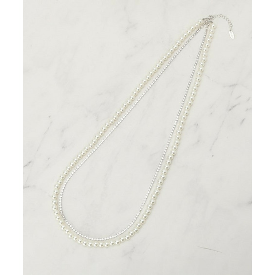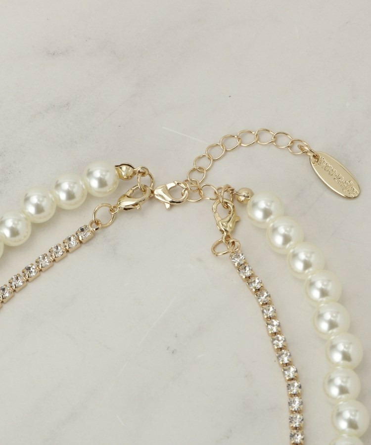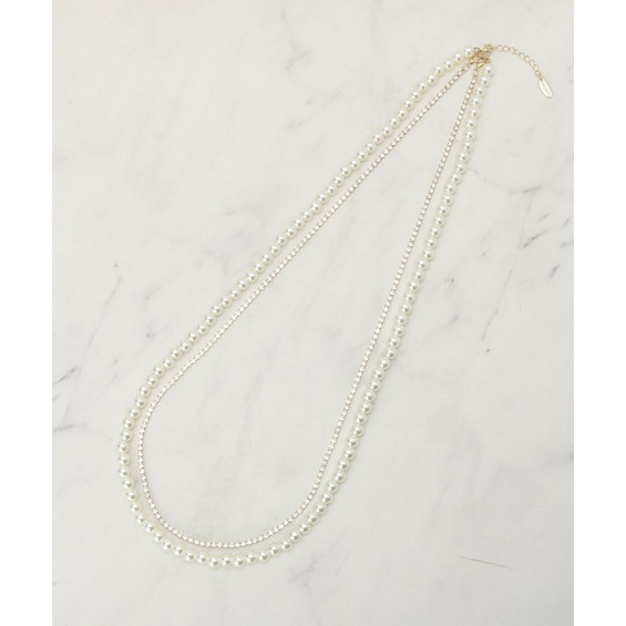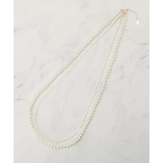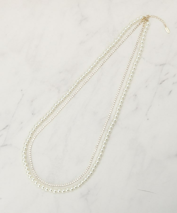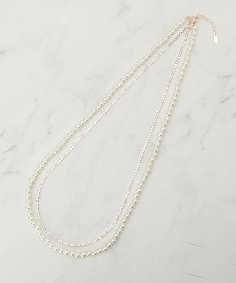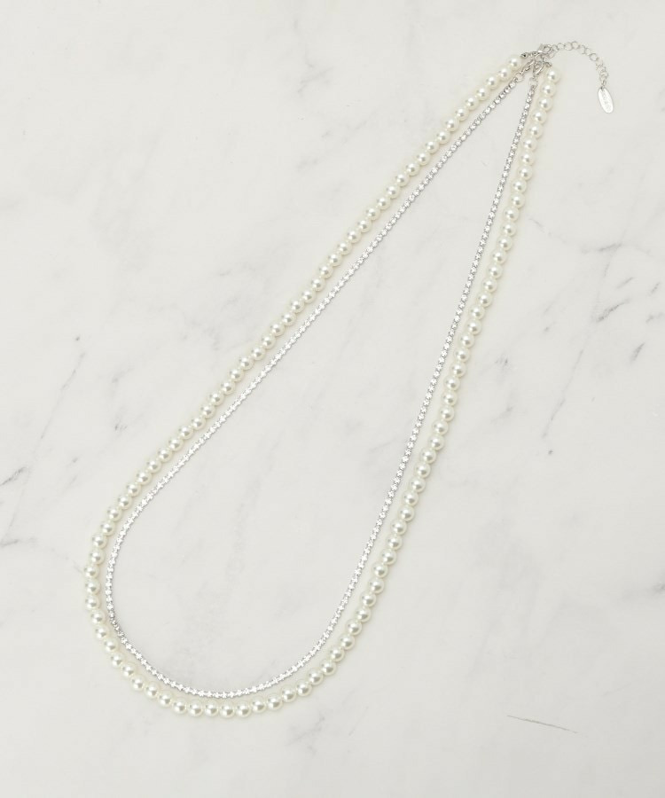 シンプルなフェイクパールネックレスと、きらびやかなダイヤレーンネックレスの二本セット。