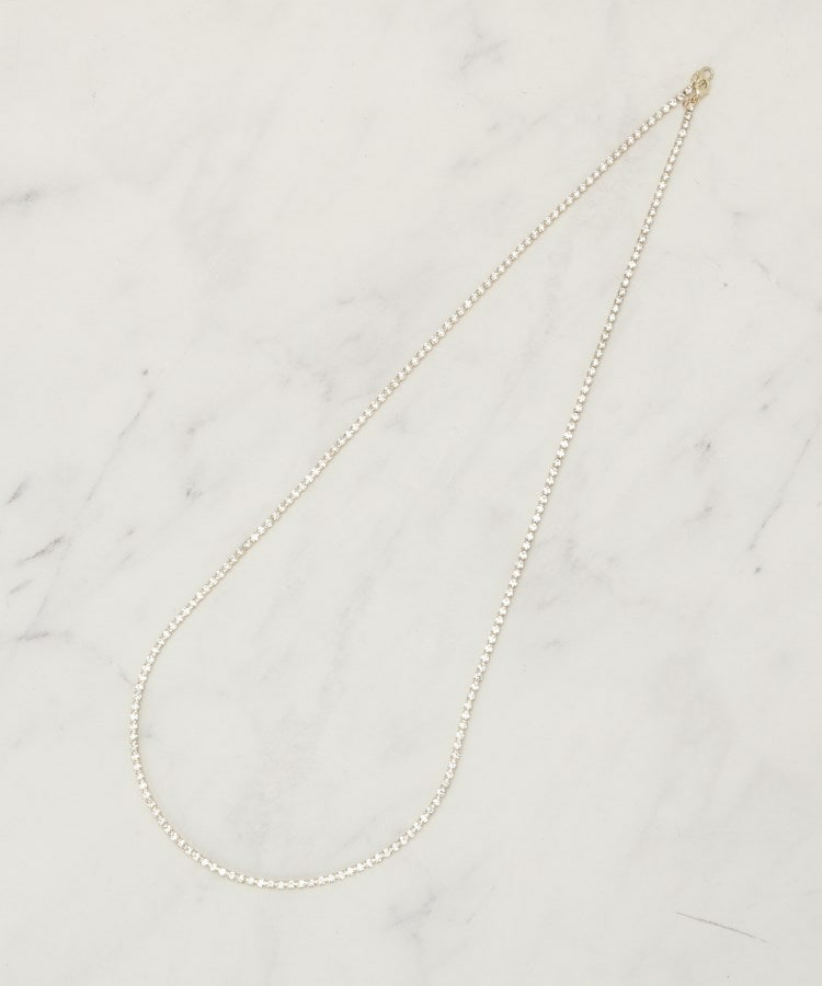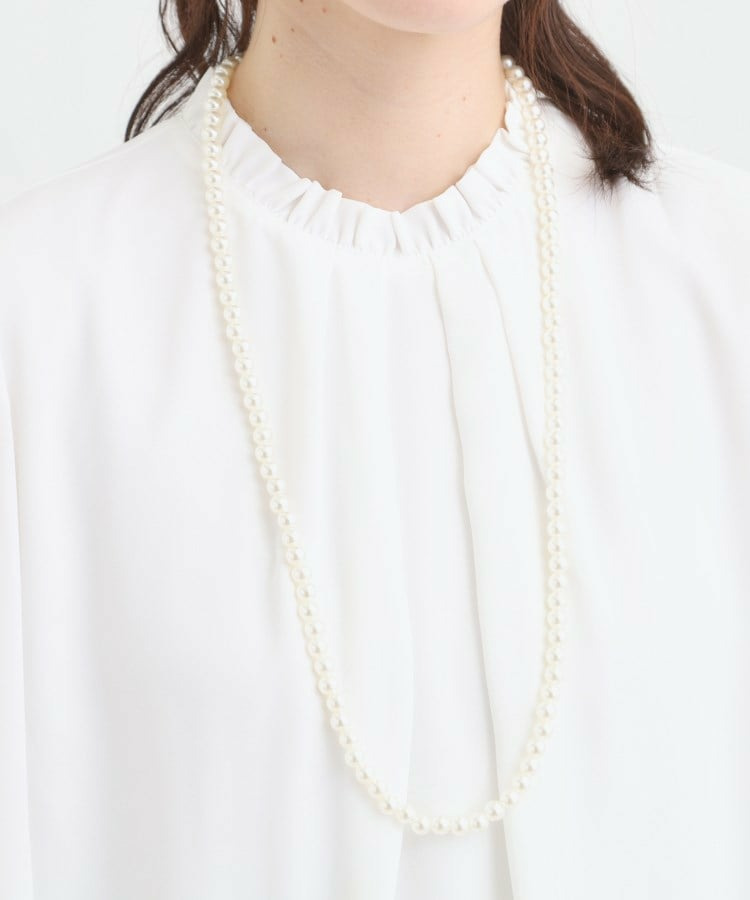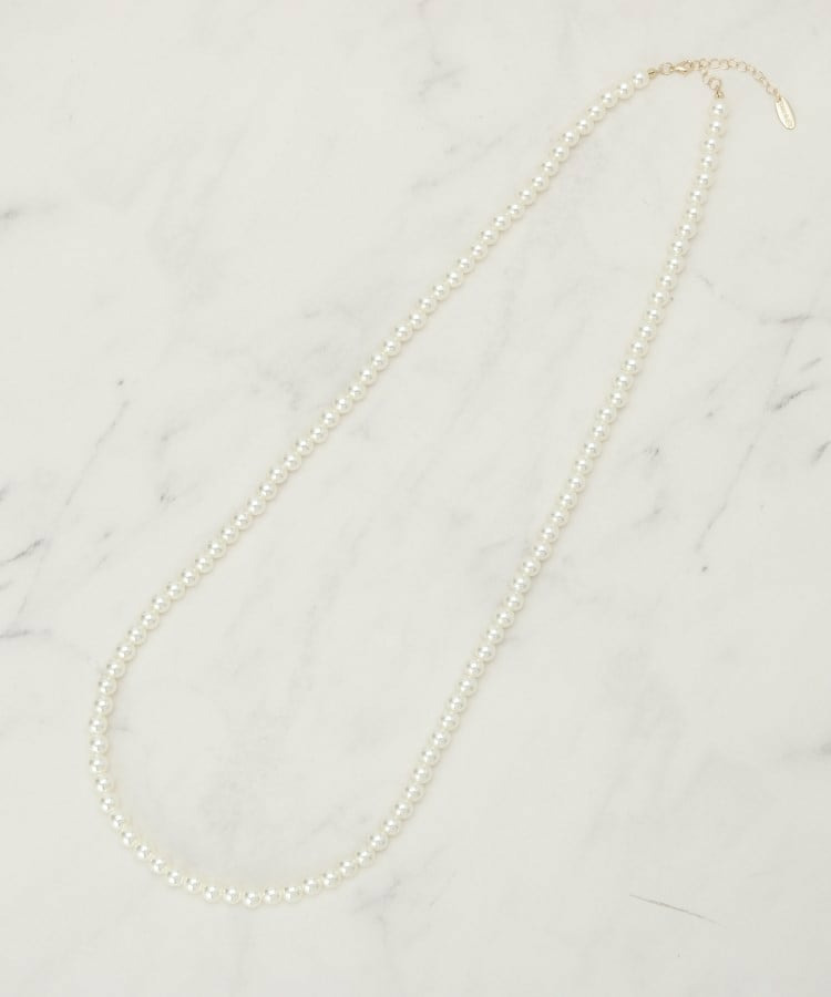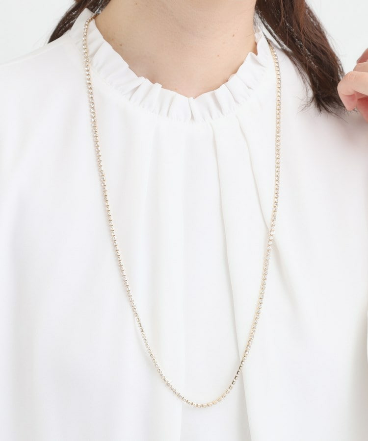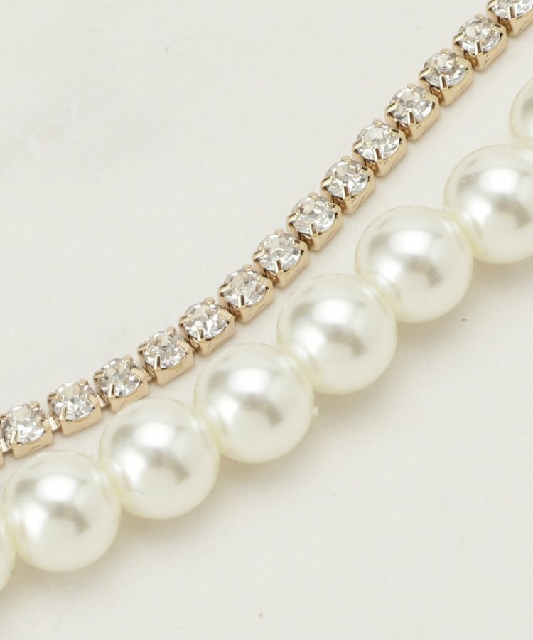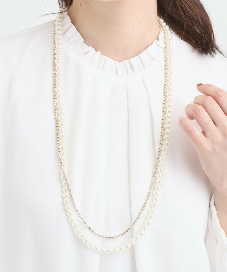 シンプルなフェイクパールネックレスと、きらびやかなダイヤレーンネックレスの二本セット。