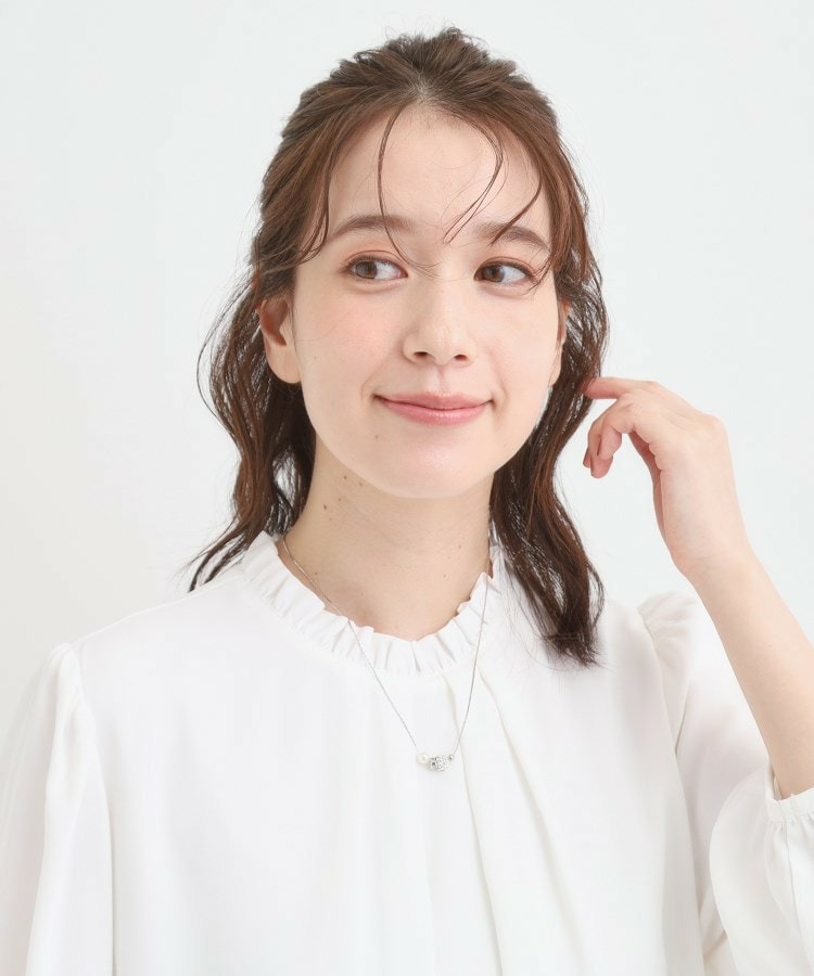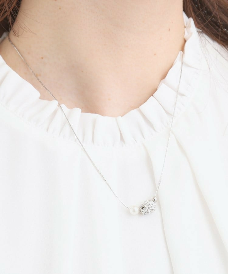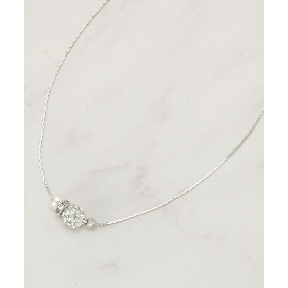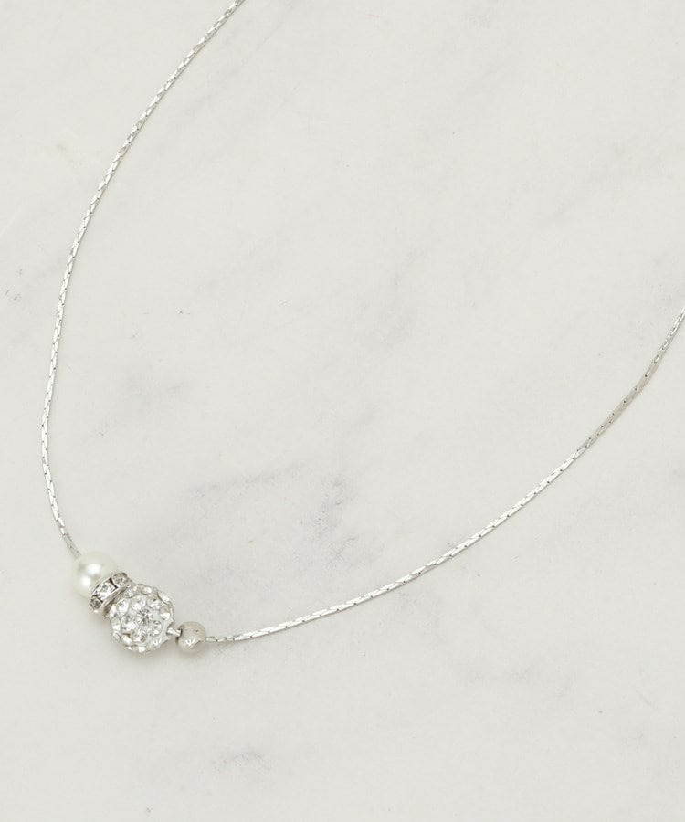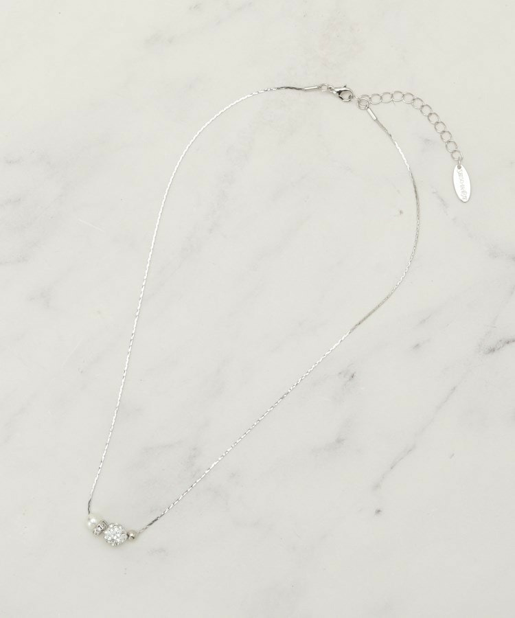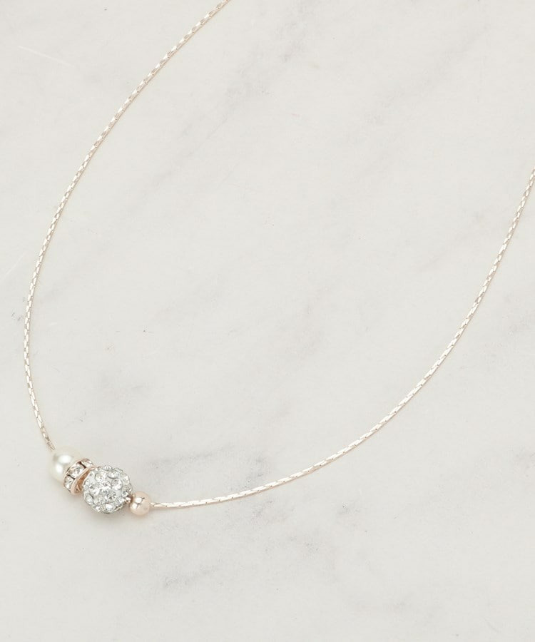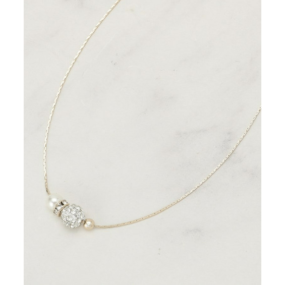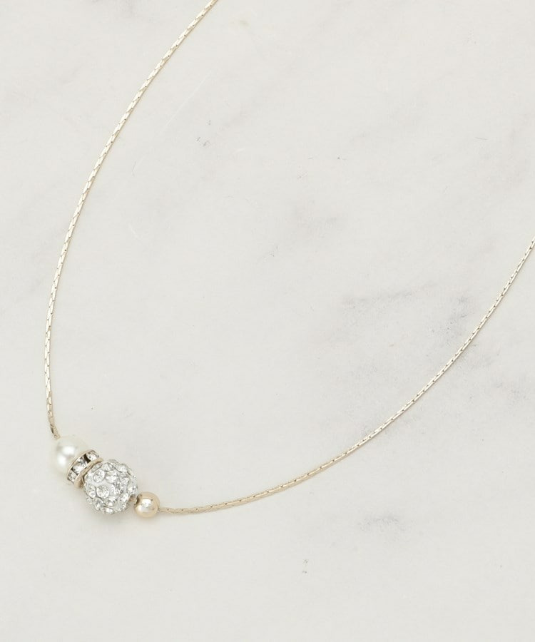 ボールにキラキラがちりばめられた煌びやかなパヴェボールとフェイクパールを組み合わせた、上品なネックレス。