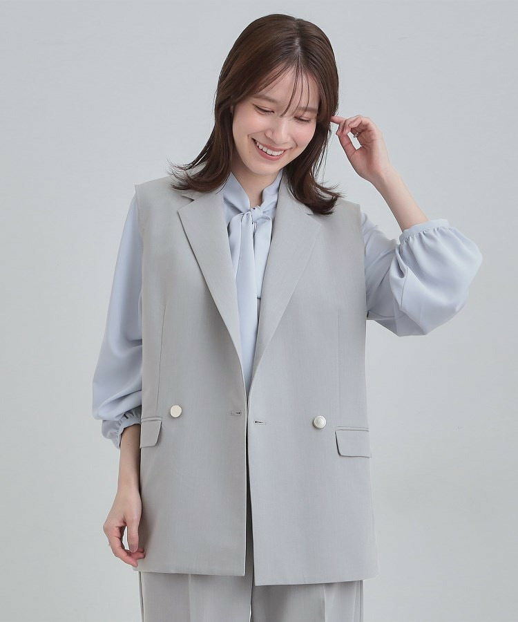 • 【セットアップ可/S-LL/洗濯機可】サッと軽やかに羽織りやすいWブレストジレ2