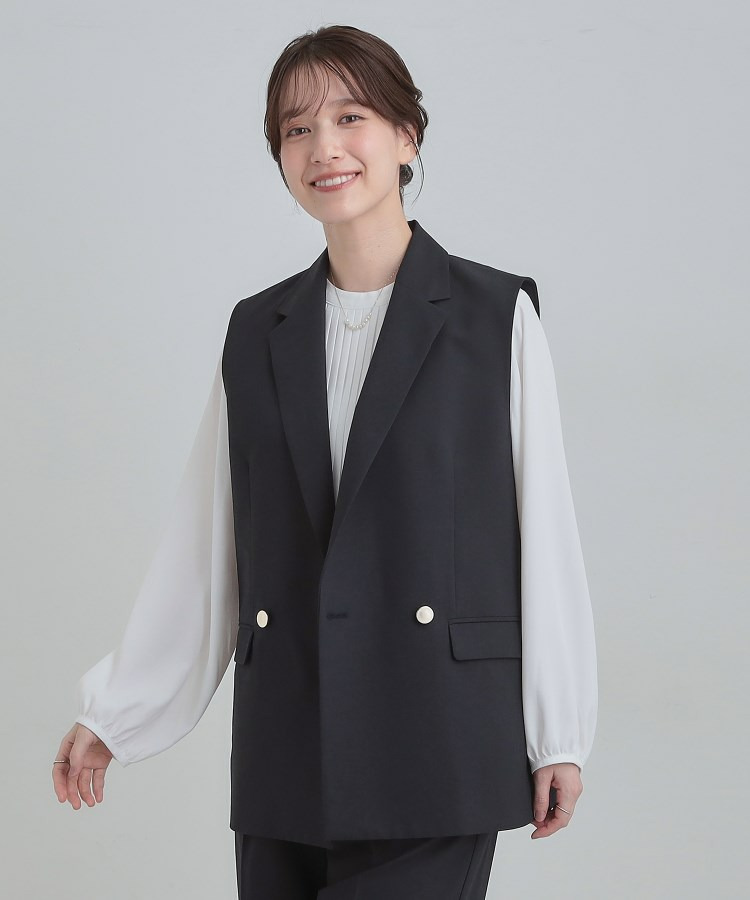 • 【セットアップ可/S-LL/洗濯機可】サッと軽やかに羽織りやすいWブレストジレ1