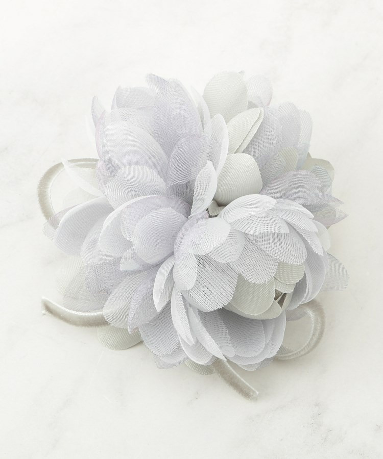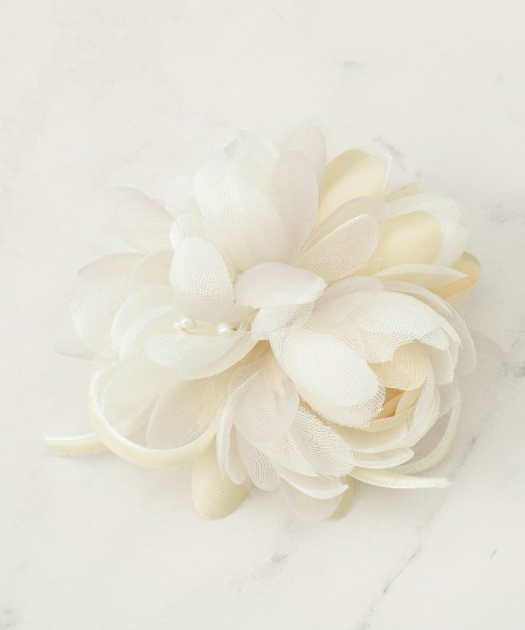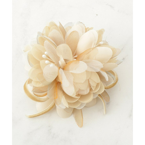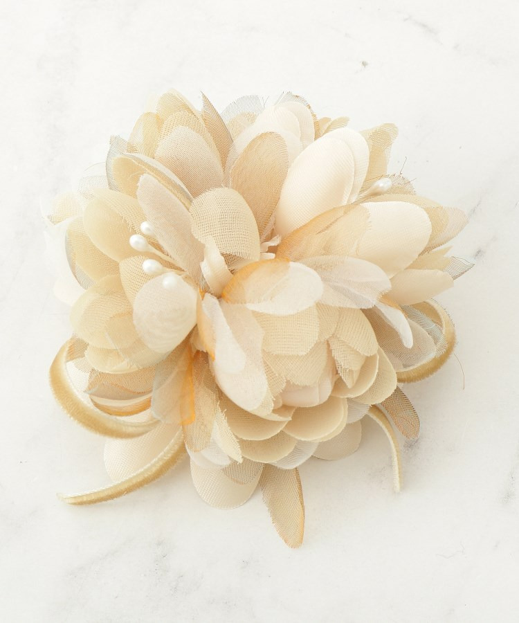 一枚一枚シフォン素材を重ね合わせ、手作業で丁寧につくったコサージュ。