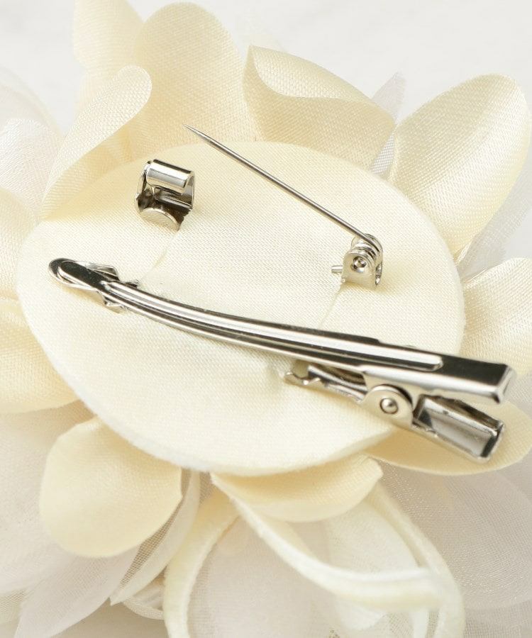 安全ピンとピンクリップ付きなので、アップした髪の毛につけるヘッドアクセとしてやバックなどへの装飾も可能です。