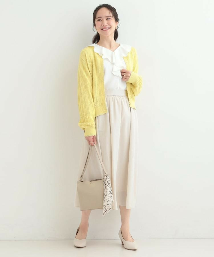 ウエストインでもアウトでもすっきり決まるので、ボトムはパンツでもスカートでも。