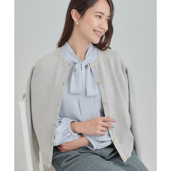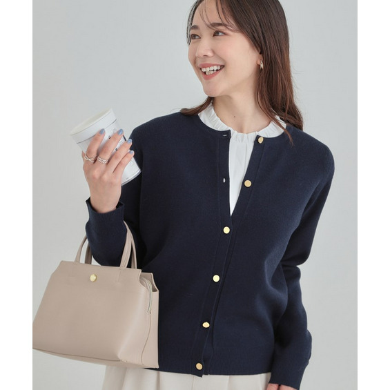 もちっとしたタッチでありながらすっきりとした表面のニットカーディガン。