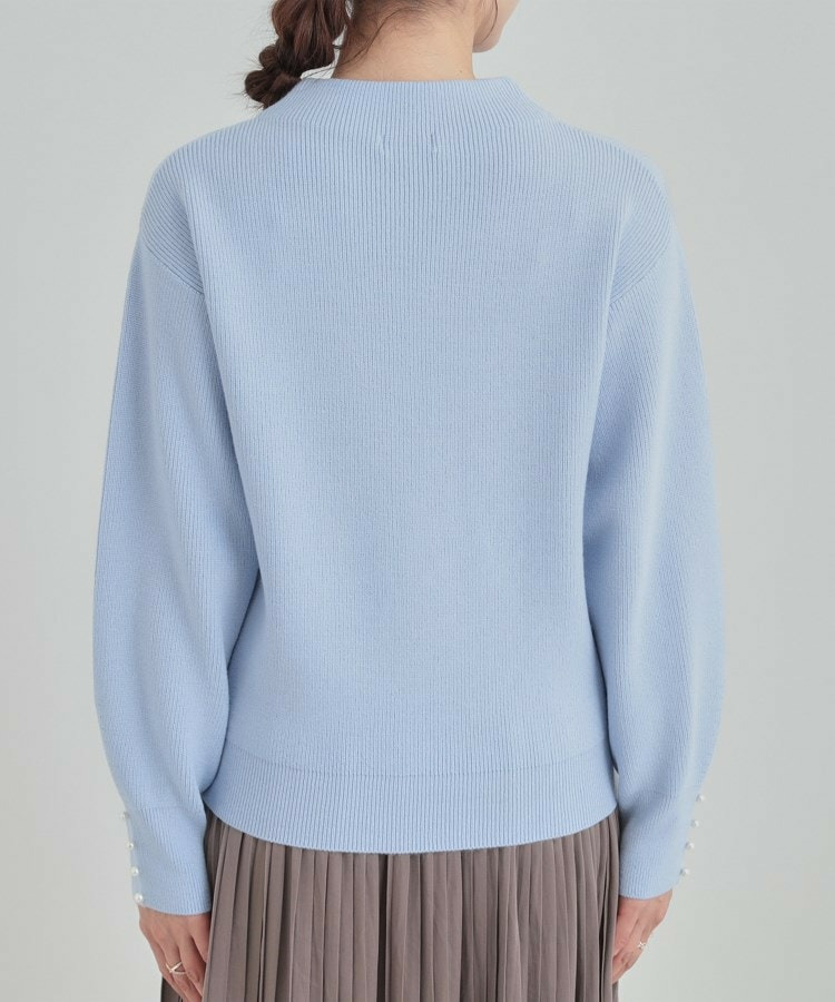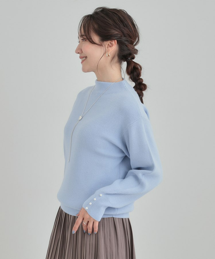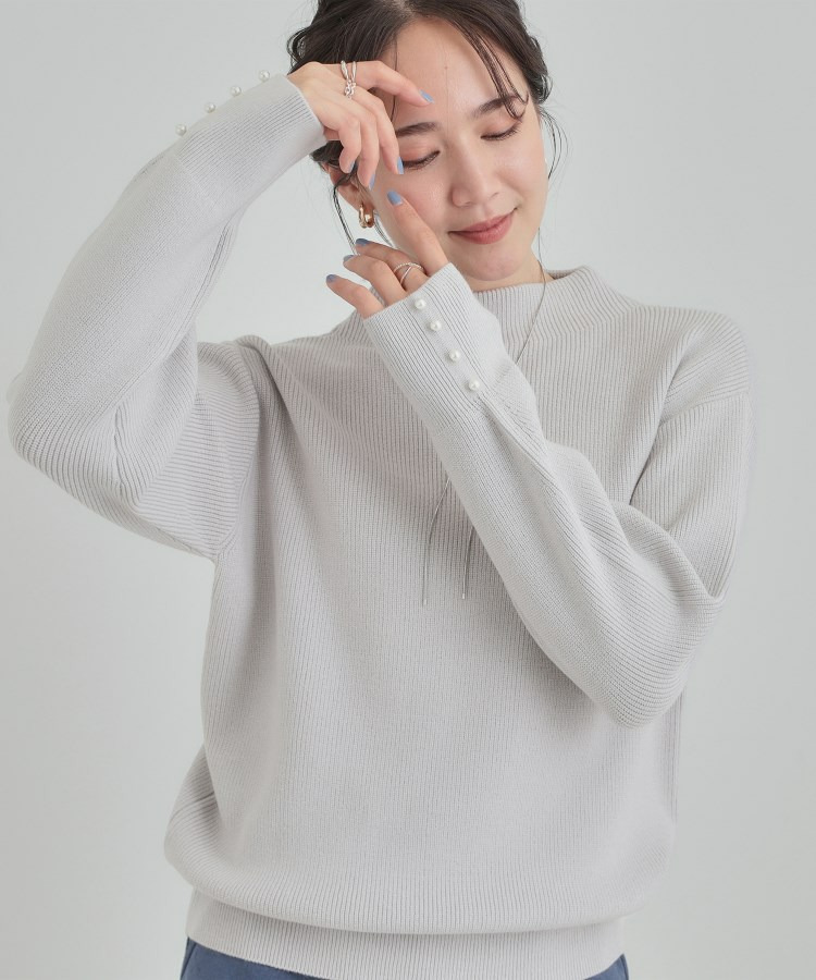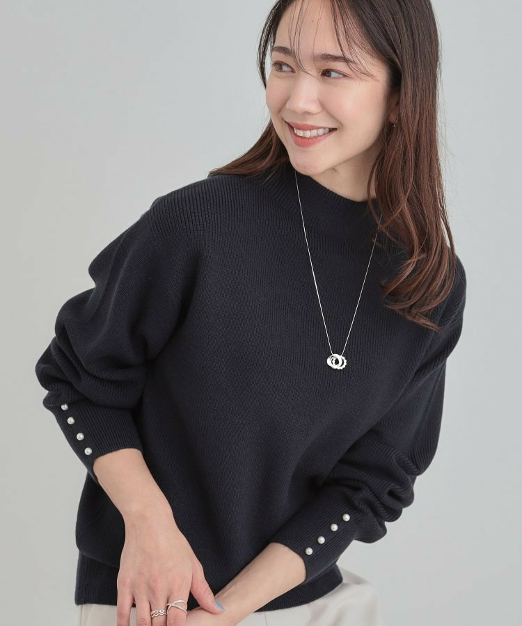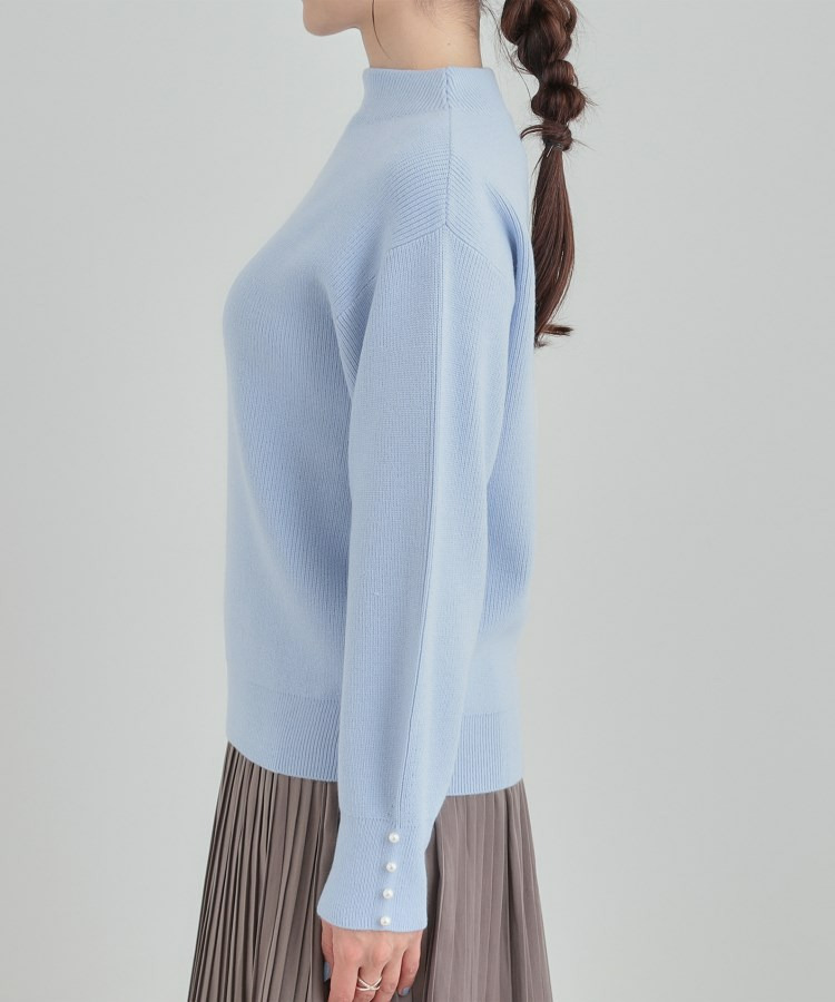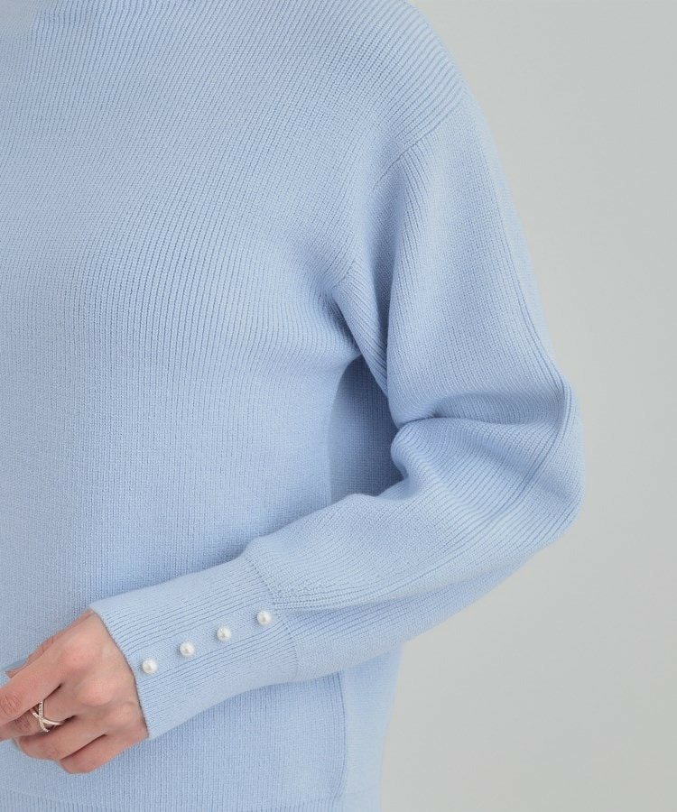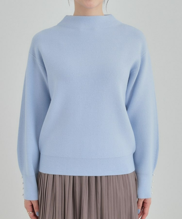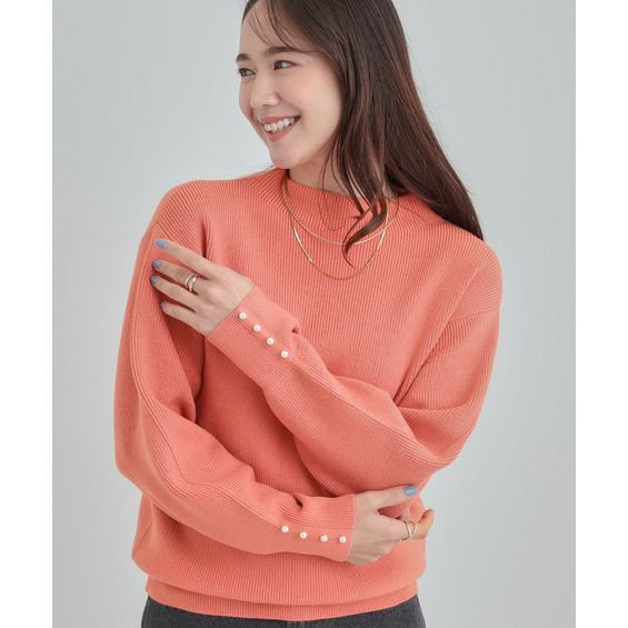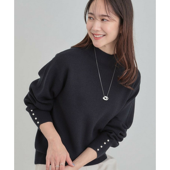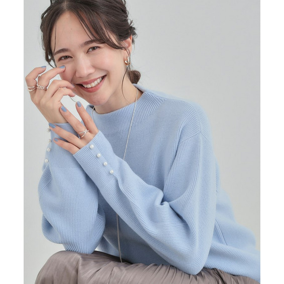 【洗える/毛玉になりにくい】お袖パールで上品な ハイネックニット