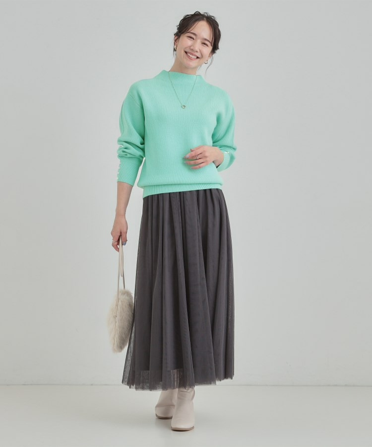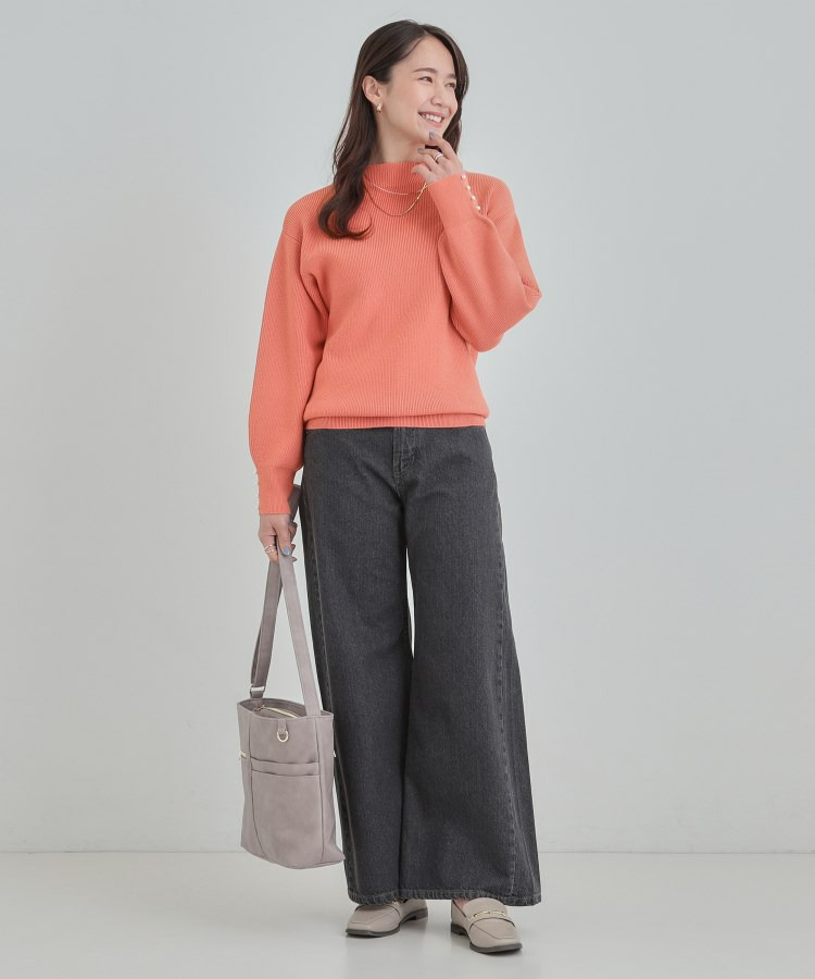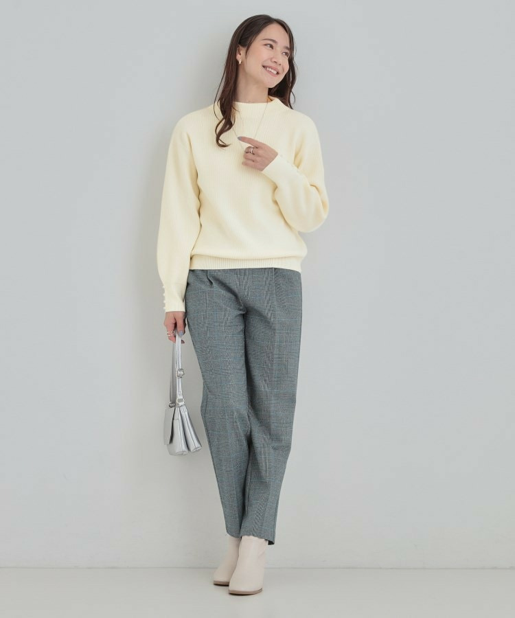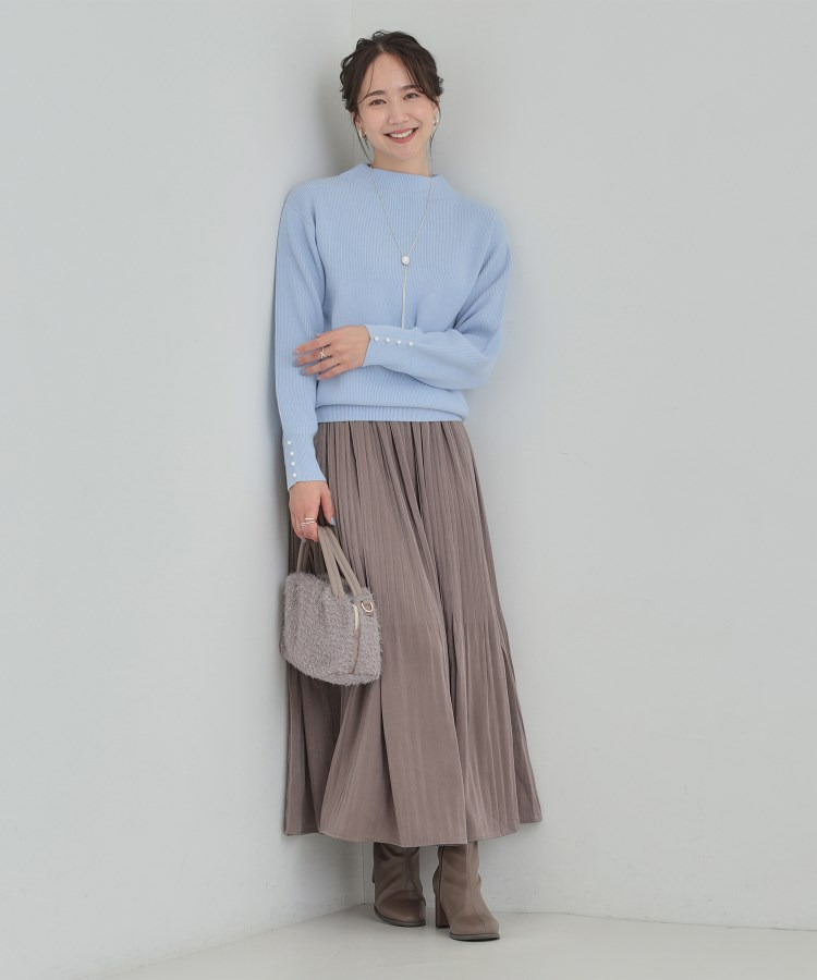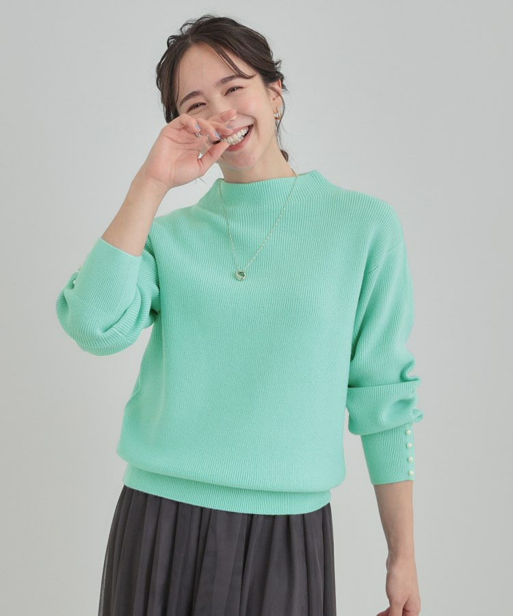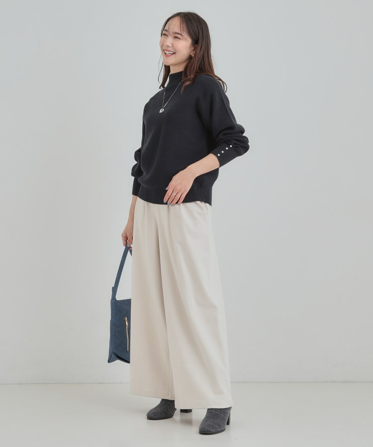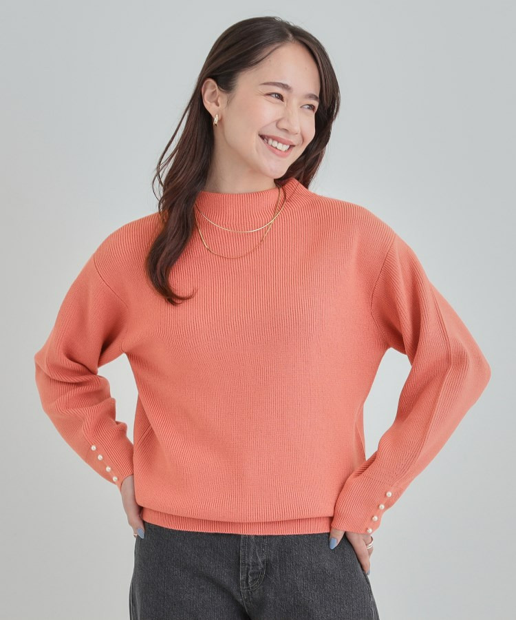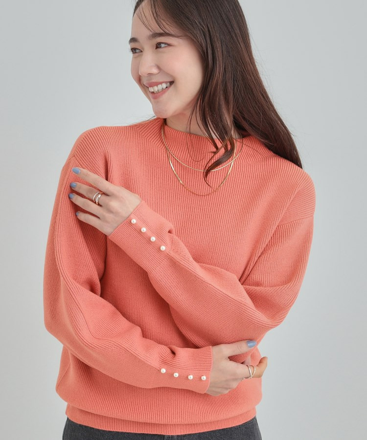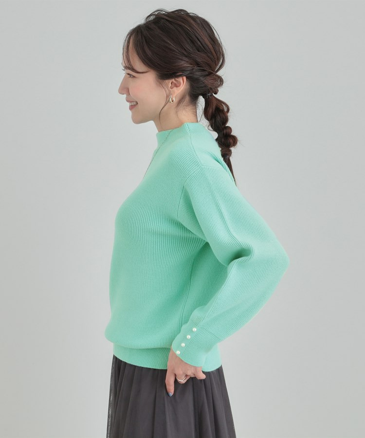 【洗える/毛玉になりにくい】お袖パールで上品な ハイネックニット