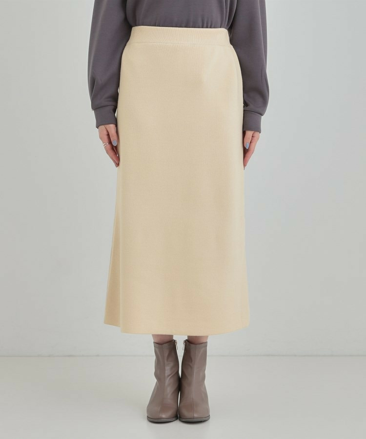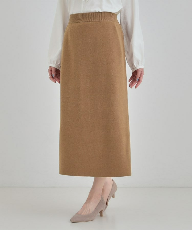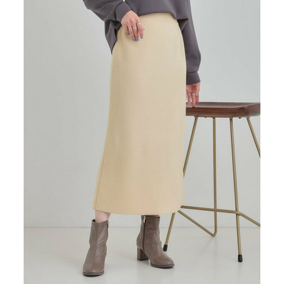 毛玉になりにくい糸で編み立てた、シンプルで着回しがきくニットスカート。