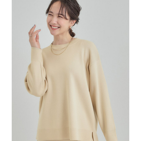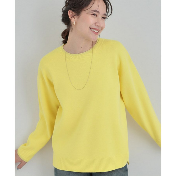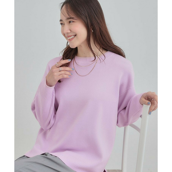 毛玉になりにくい糸で編み立てた、シンプルで着回しがきくニット。