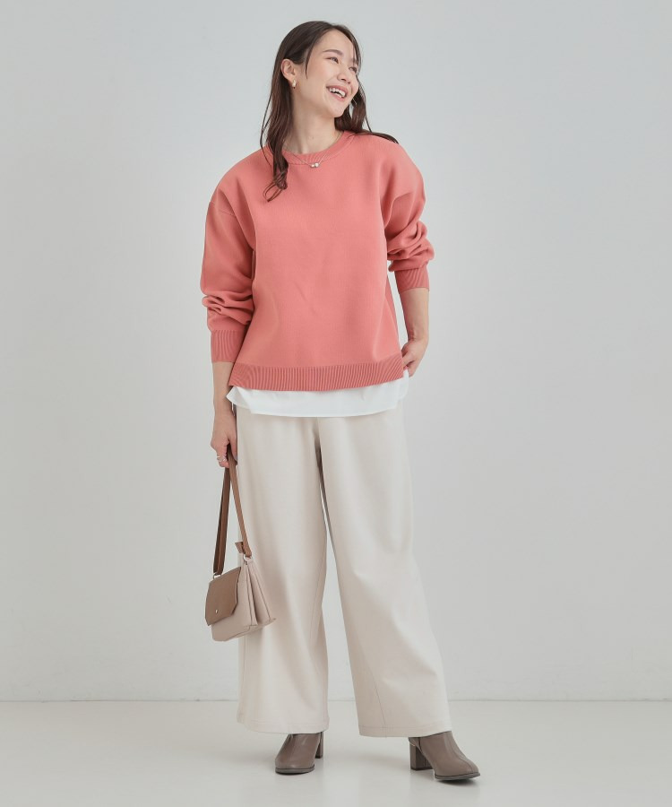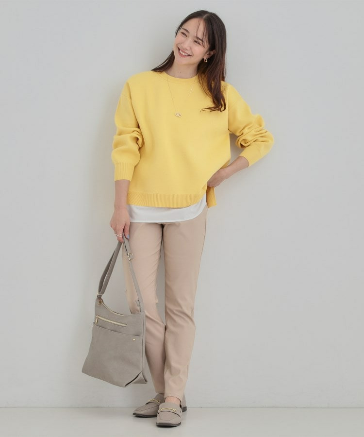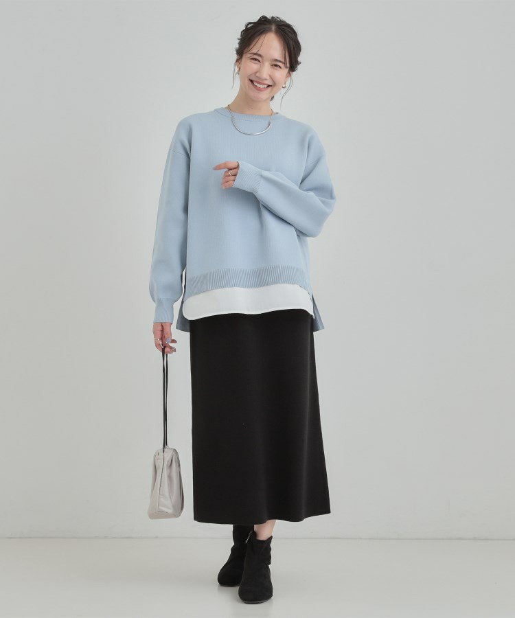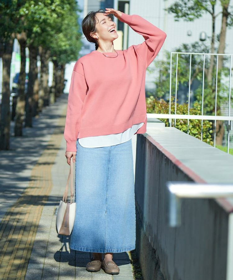 レイヤード風のデザインなのでインせずにさっとコーデが決まり、忙しい日のスタイリング選びにもおすすめです。