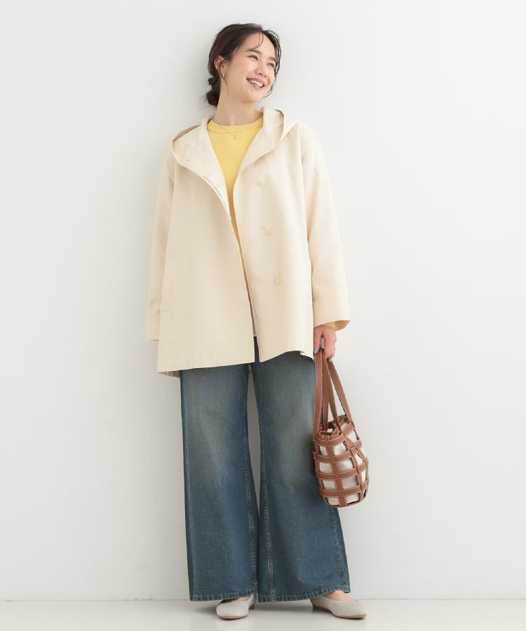 ワイドシルエットのデニムと合わせると、ゆるっとした中にも清潔感あるコーデが完成します。