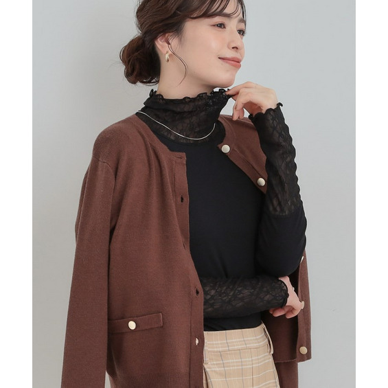 ちらりと見せるレースの袖や衿がいまっぽい1枚です。