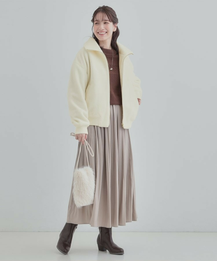 バランスの良い丈感で、レディなコーデにもカジュアルコーデにも合わせやすいアウターです。