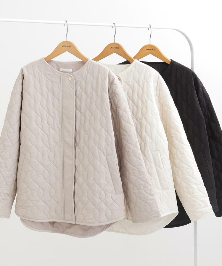 【洗濯機可/S-LL/撥水】大人が着たい ノーカラー キルトジャケット