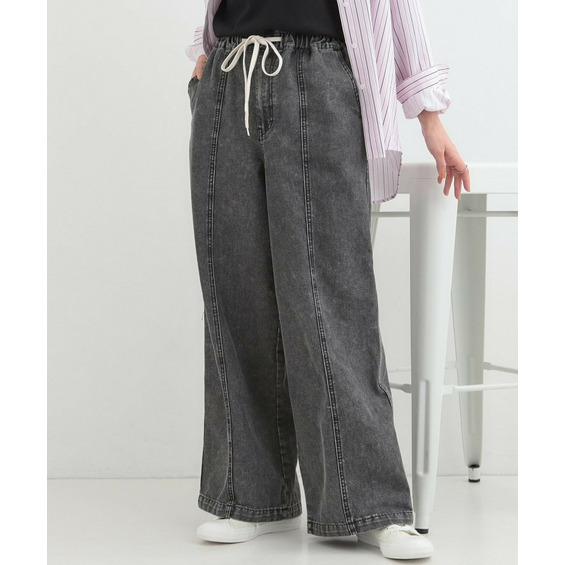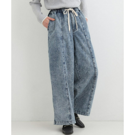 【S-LL】抜け感あるスタイルに ケミカルデニム イージーワイドパンツ