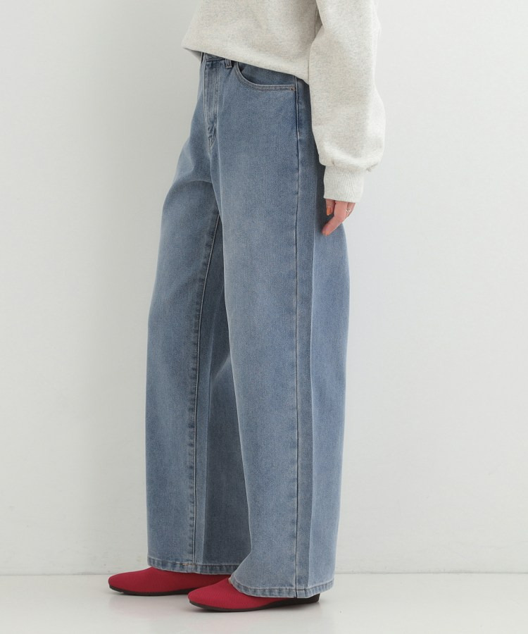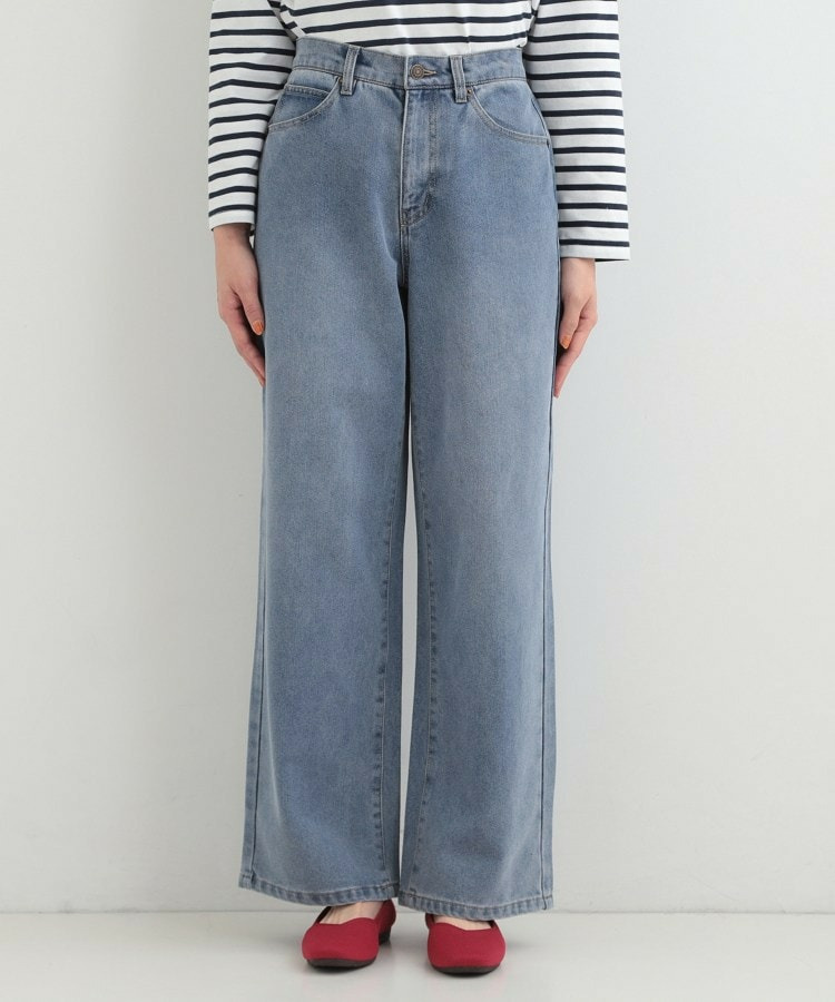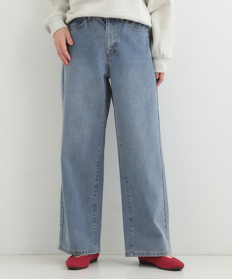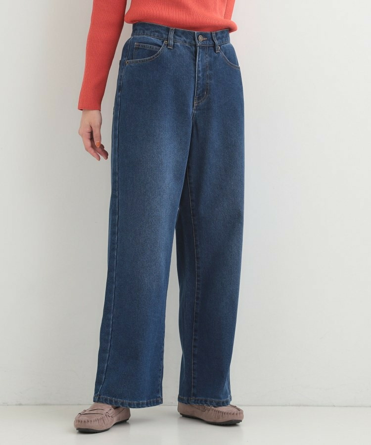 【SHOO WARM】あったか裏微起毛デニムワイドパンツ