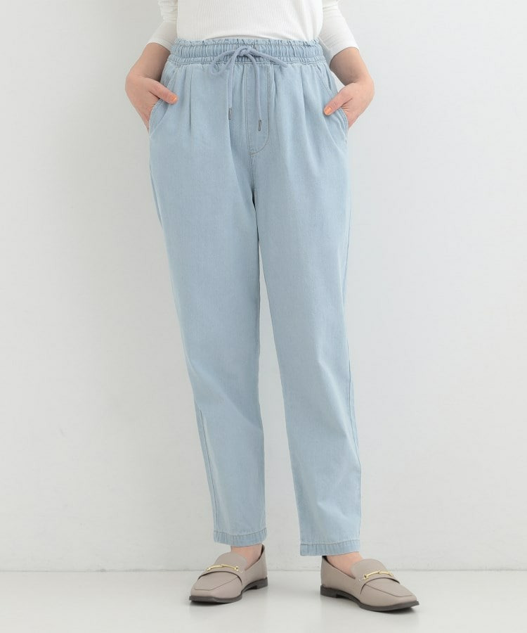 【ライトオンスデニム/S-LL】らくらく イージーデニムテーパードパンツ