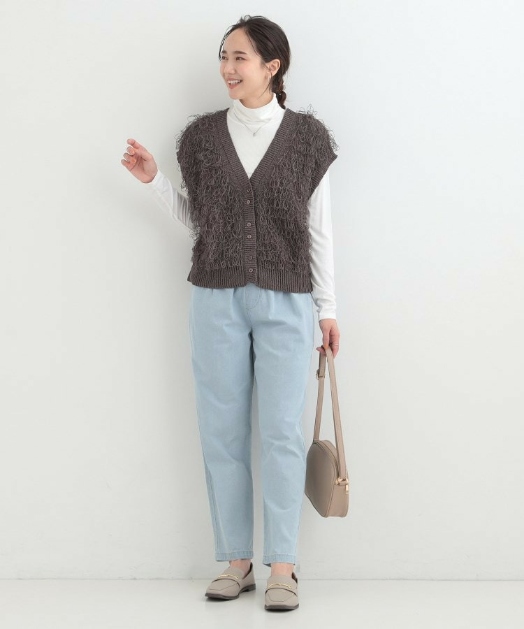 ゆるっとしたサイズ感の襟付きシャツと合わせていただくとこなれた印象になりおすすめです。