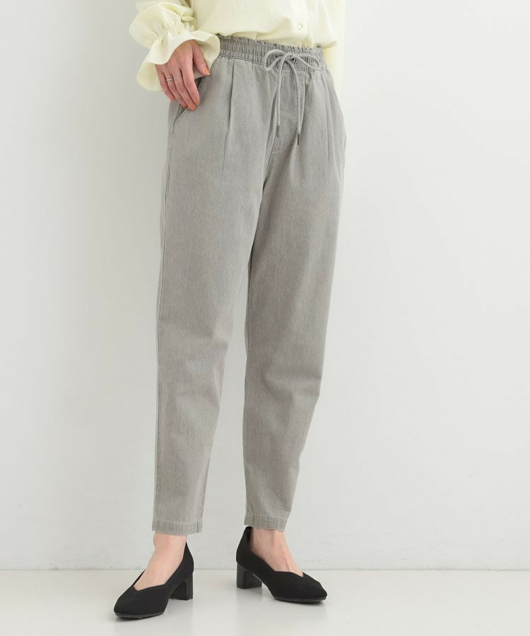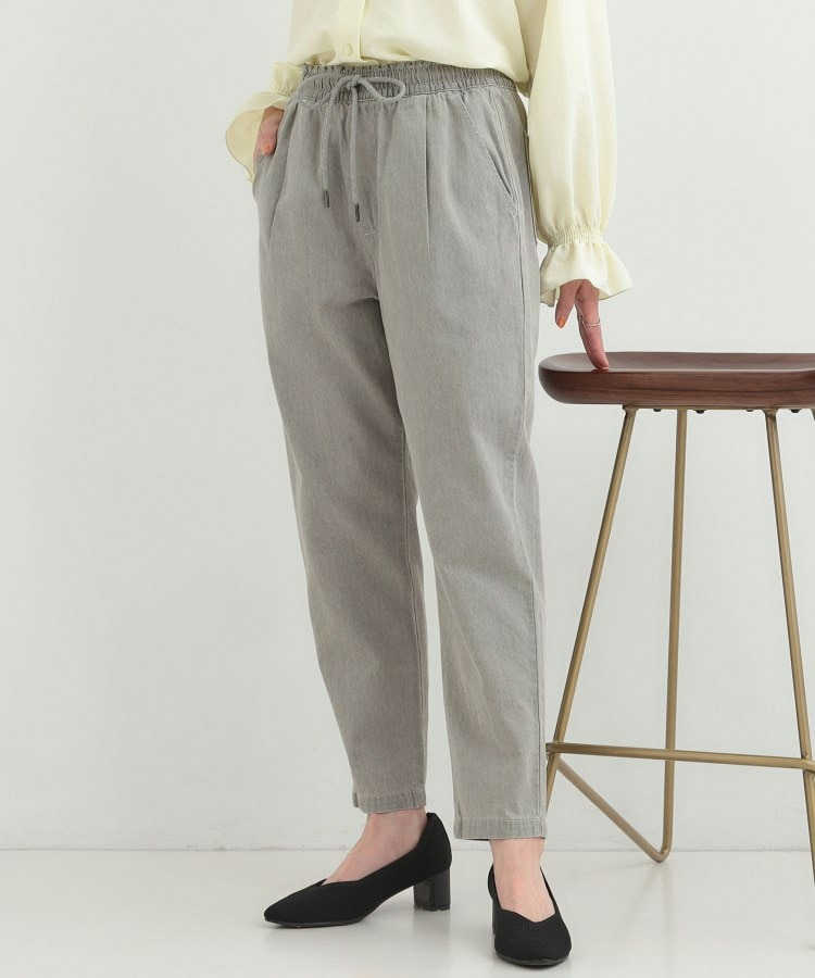 太もも回りはゆったりしながらも、裾に向かってすっきりと細くなるシルエットです。