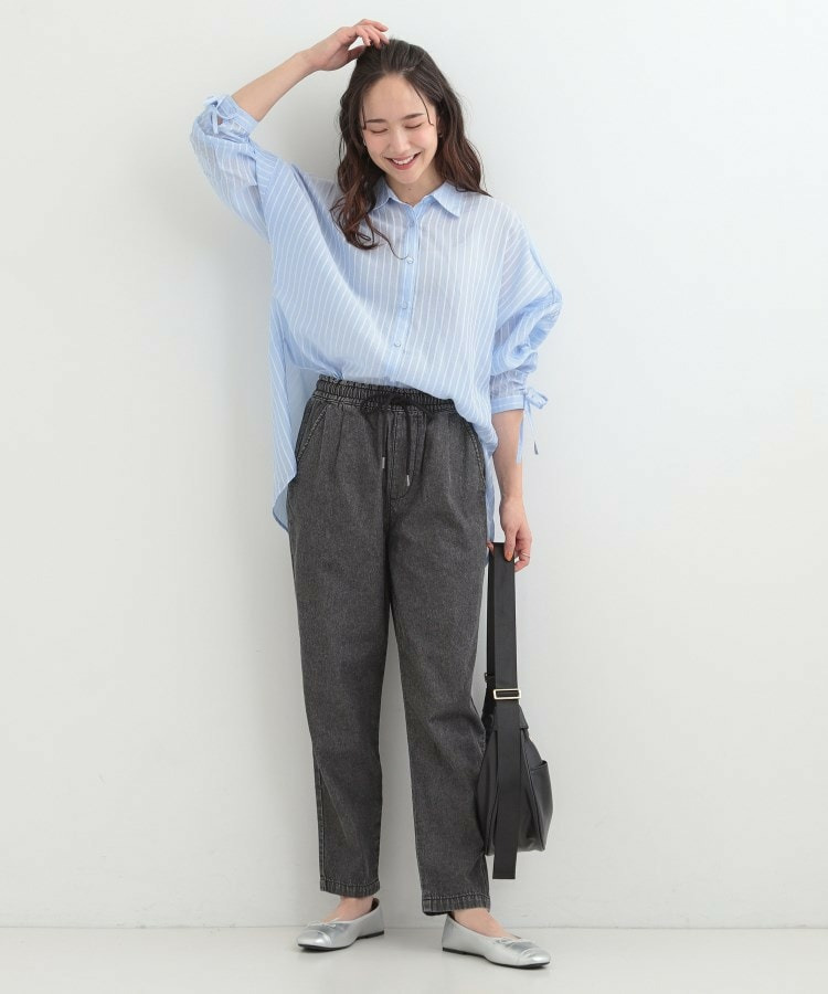 柔らかなライトオンスデニム素材を使用し、軽い着心地と程よい落ち感を実現。