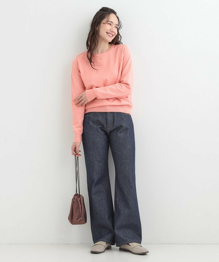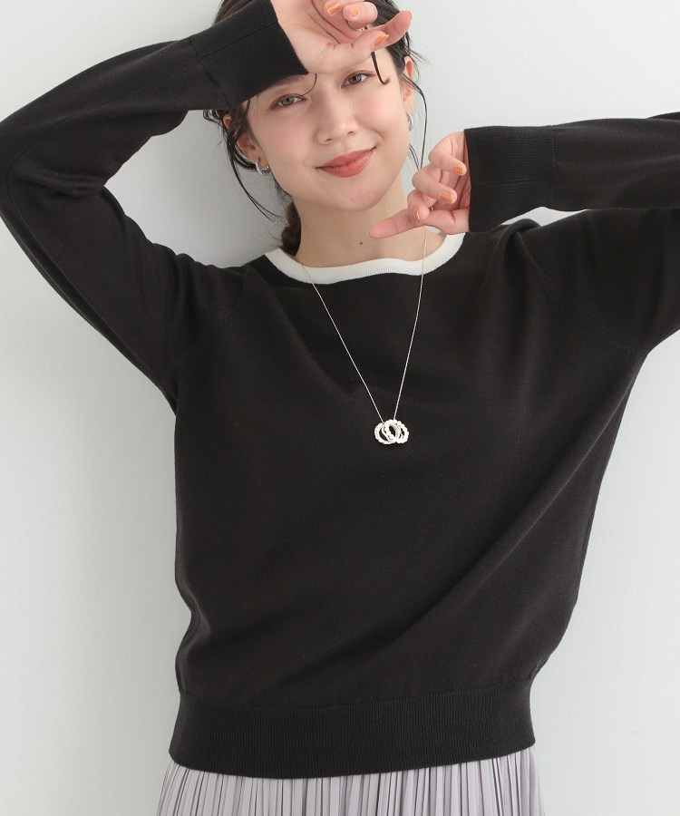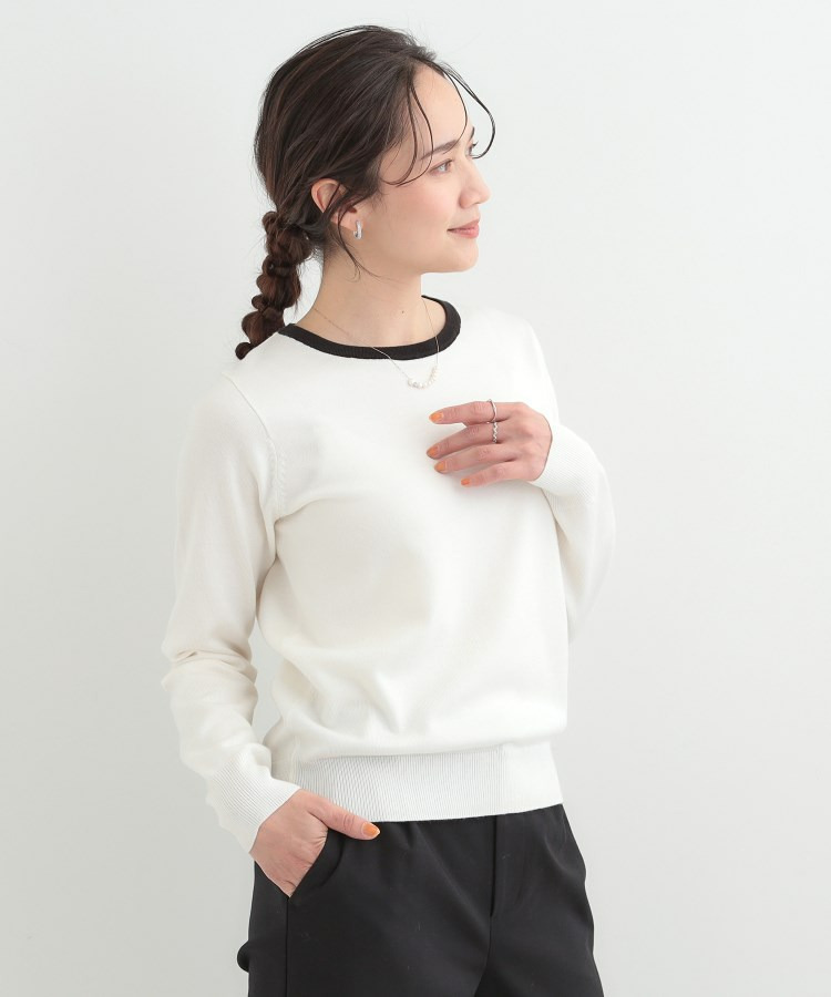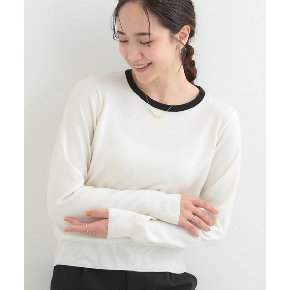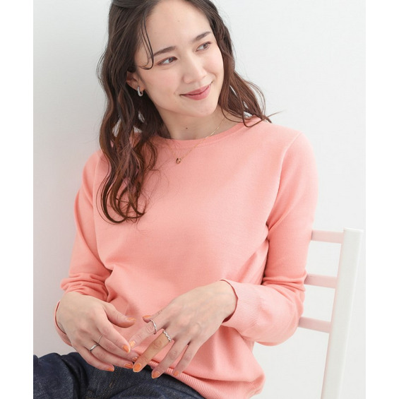 【洗濯機可/S-LL/セットアップ可】シンプルきれい見え クルーネックニット