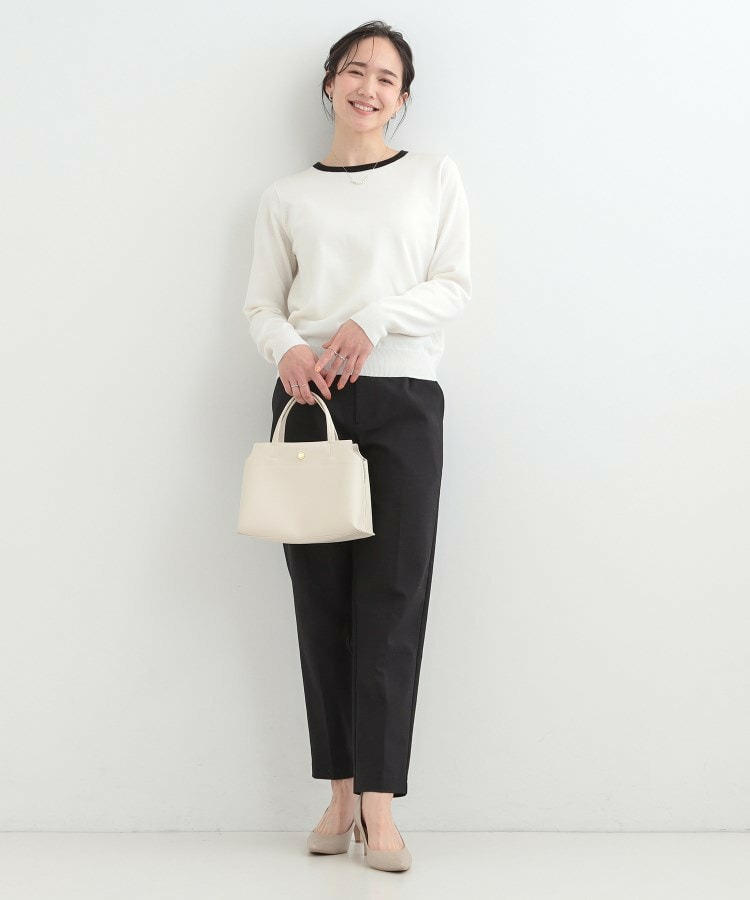 テーパードパンツなどの細身のパンツを合わせていただくとお仕事シーンにもマッチします。