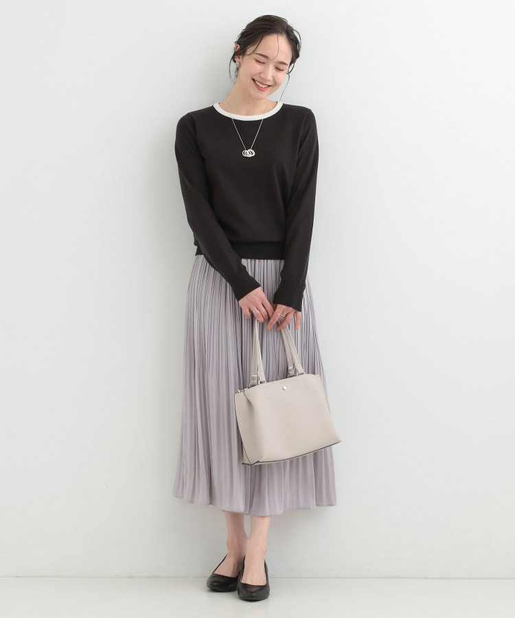 フレアやプリーツなどふんわりシルエットのスカートを合わせていただくと、上品にまとまります。