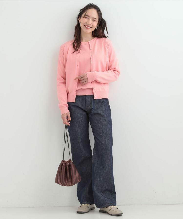 同素材のカーディガンとセットで着たいただくだけで簡単にコーデが決まります。