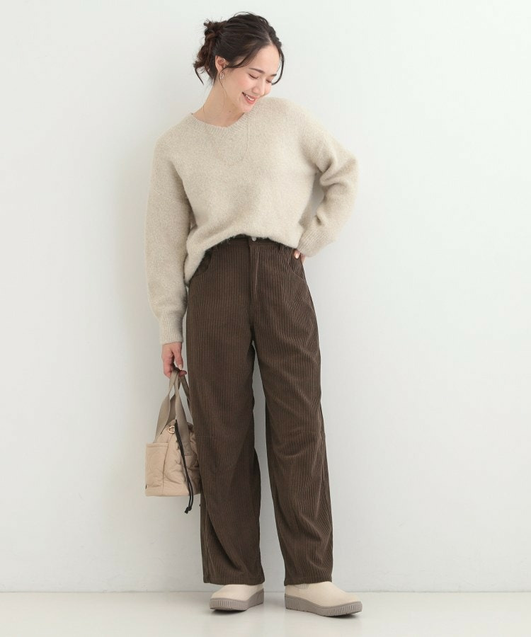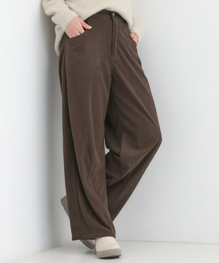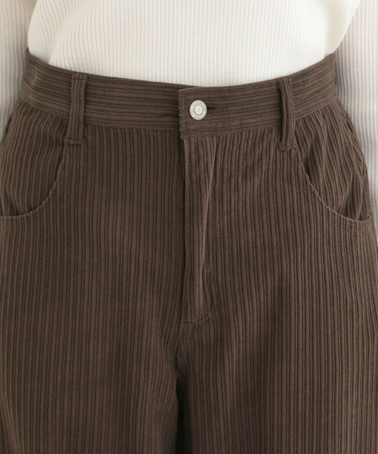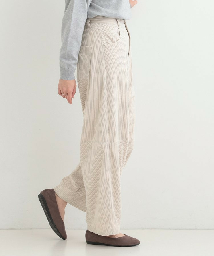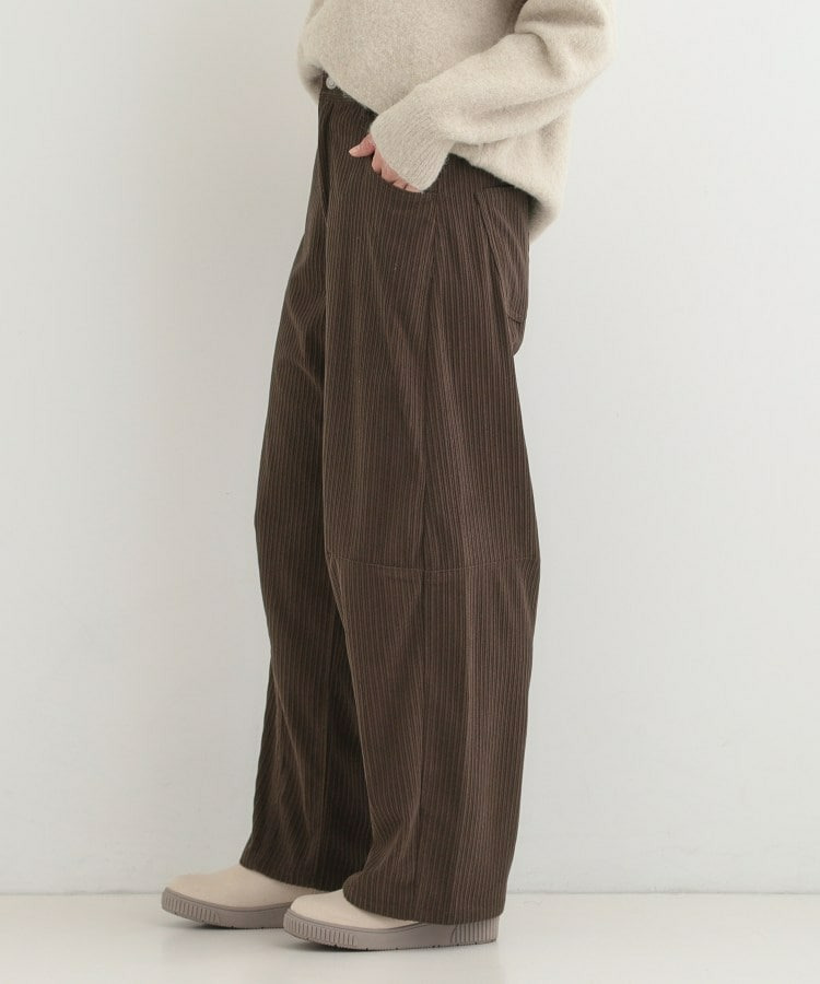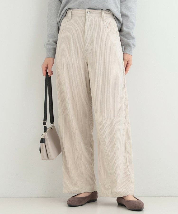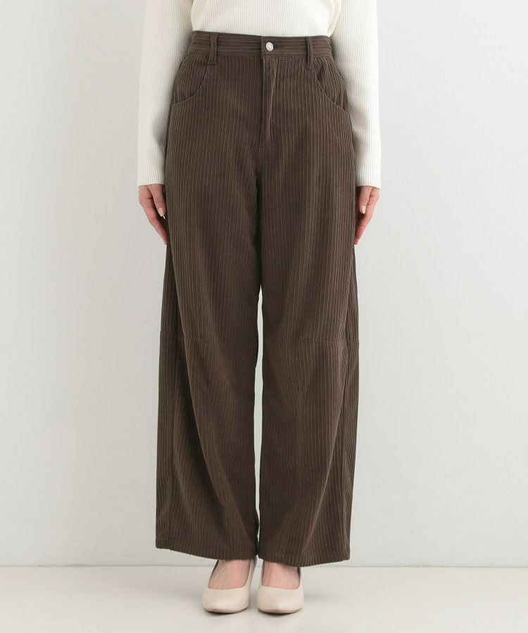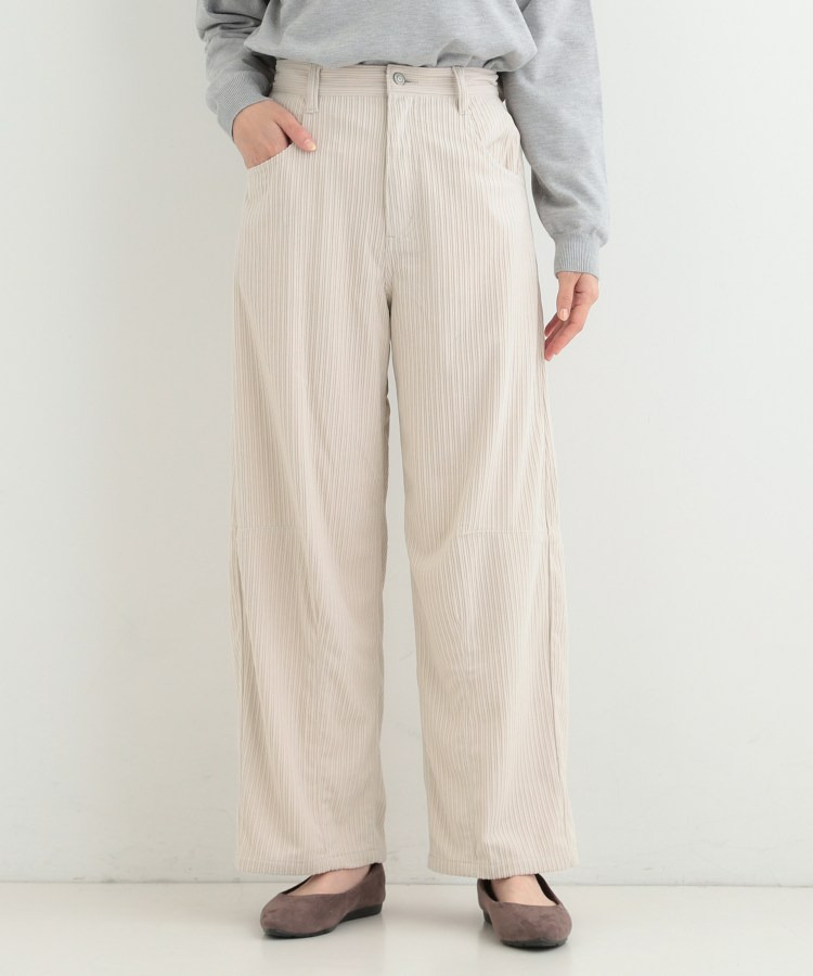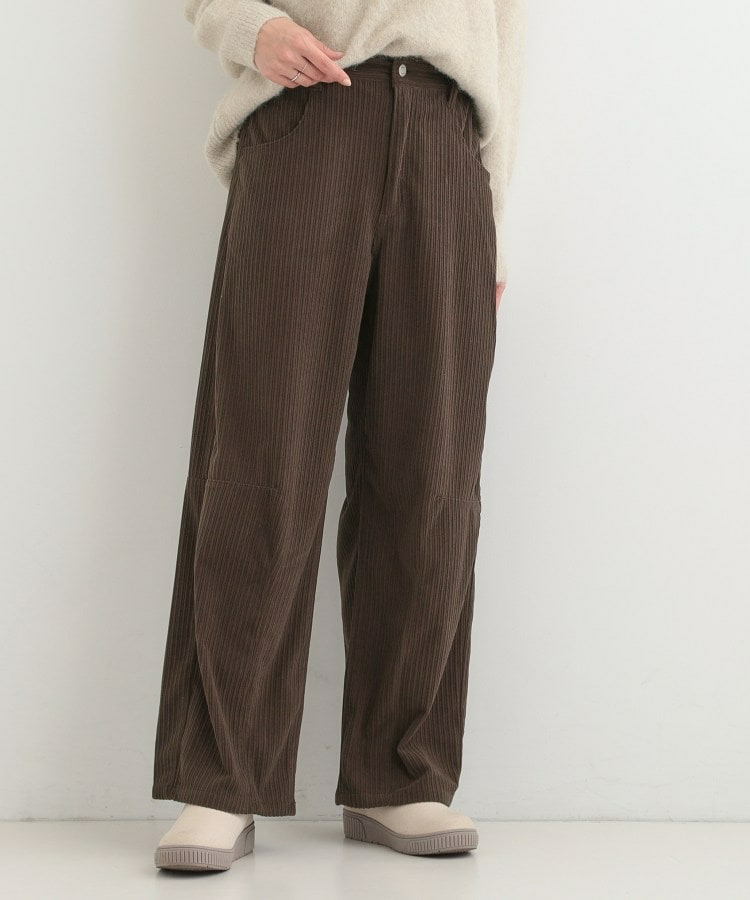太めと細めの畝が特徴的なコーデュロイ素材を使用したカーブパンツ。