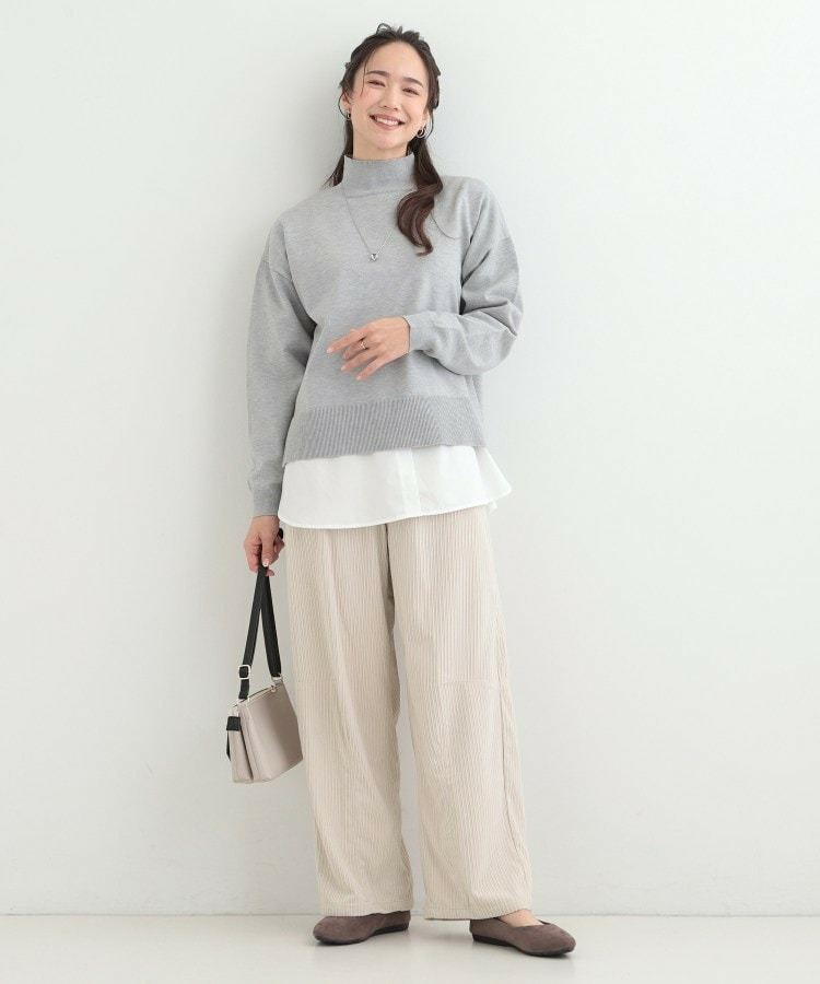 ニットや裏毛と合わせてラフに着ても、バランス良くまとまります。