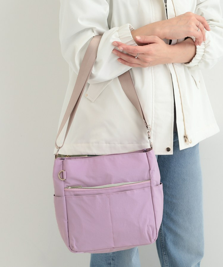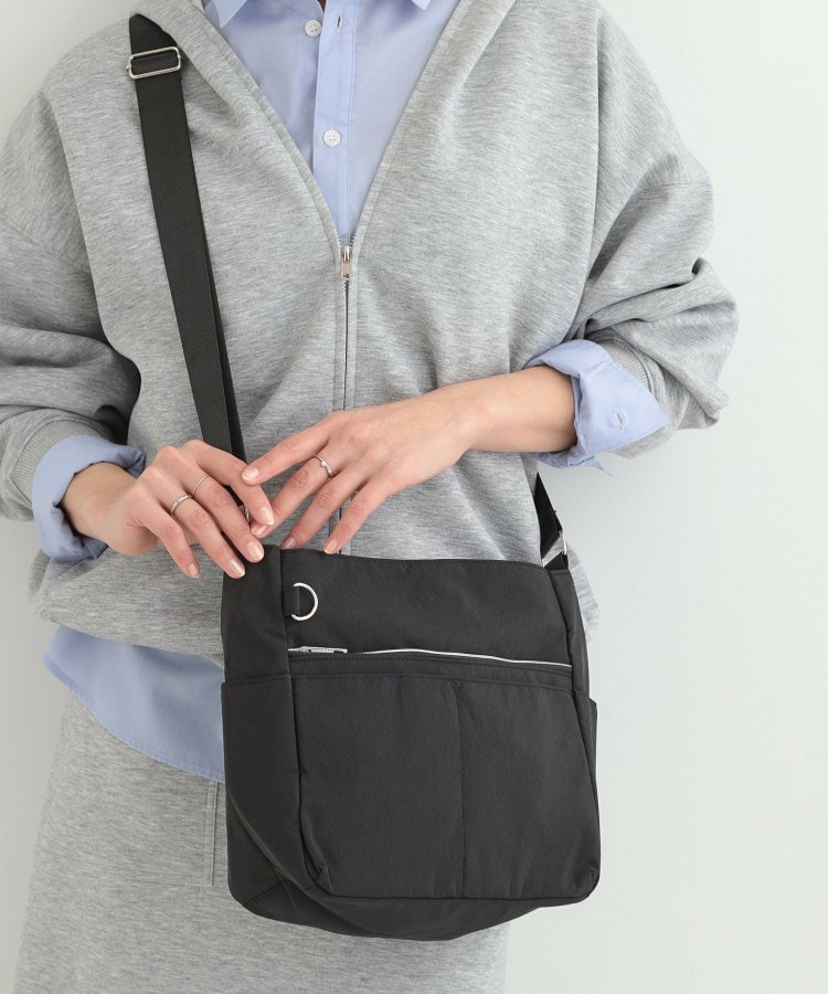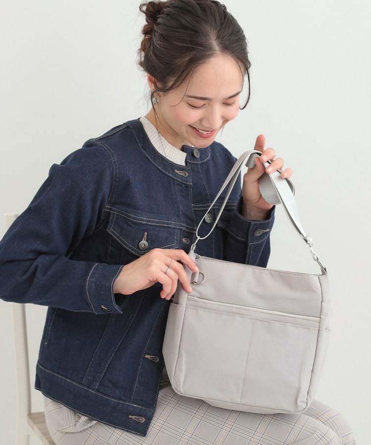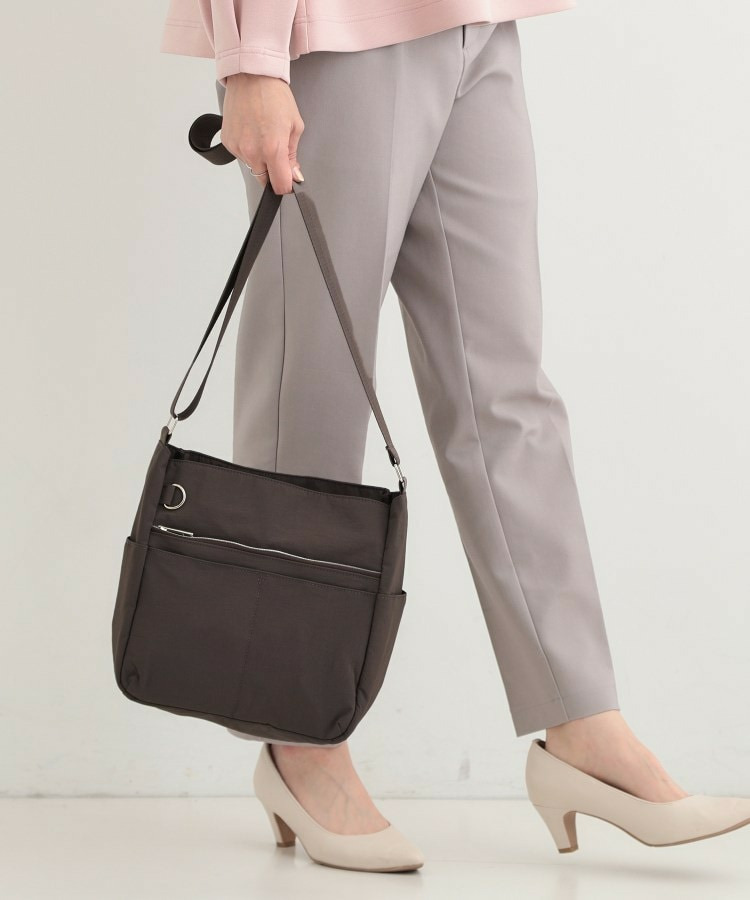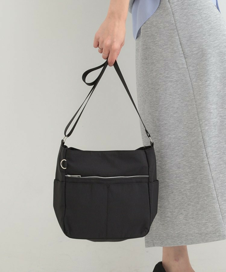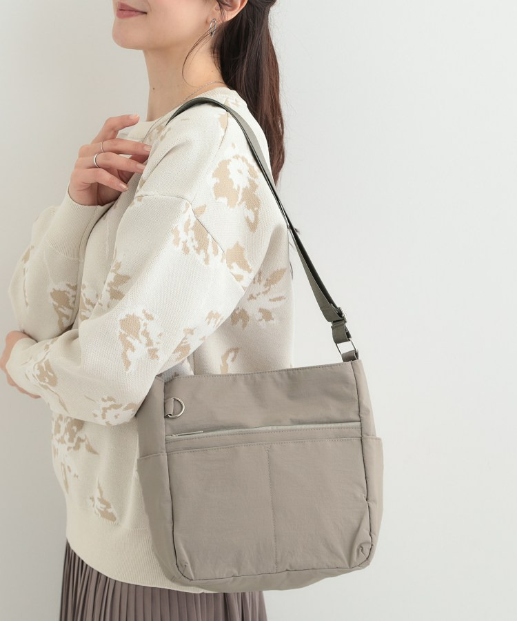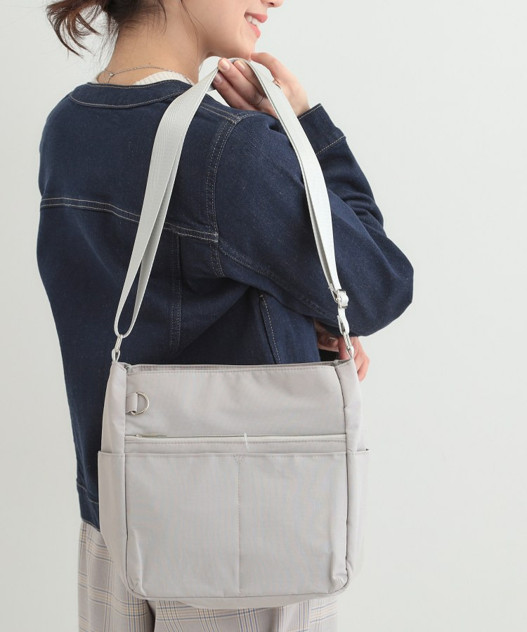 外側と内側に合わせて10個のポケットのあるショルダーバッグです。