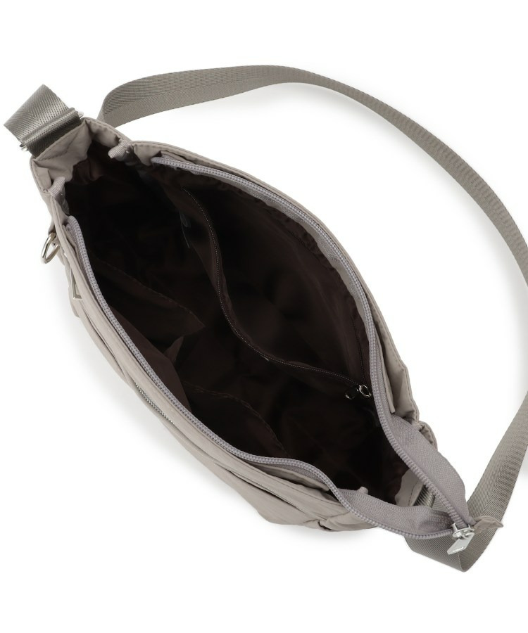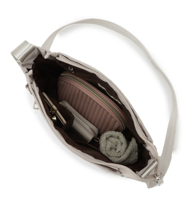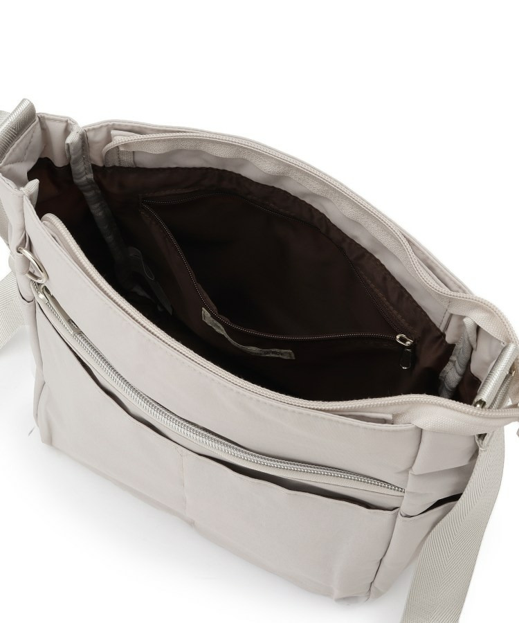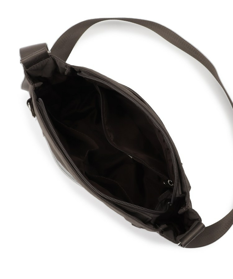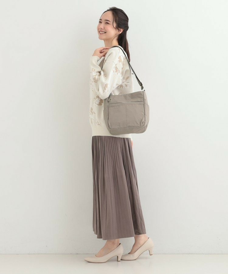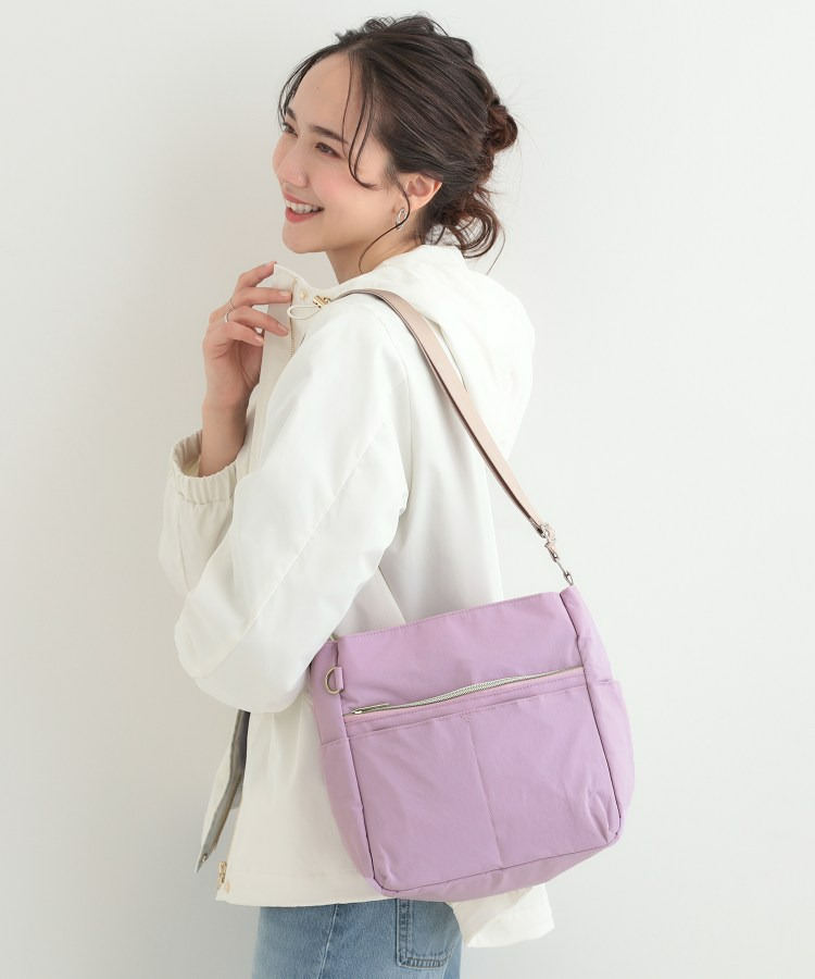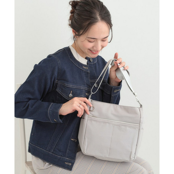 外側と内側に合わせて10個のポケットのあるショルダーバッグです。