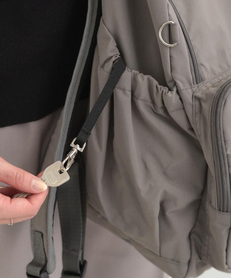 ・サイドのポケットは水筒やペットボトル、折り畳み傘などを入れるのに便利です。サイドポケットは、左右共にキーフックをつけています。