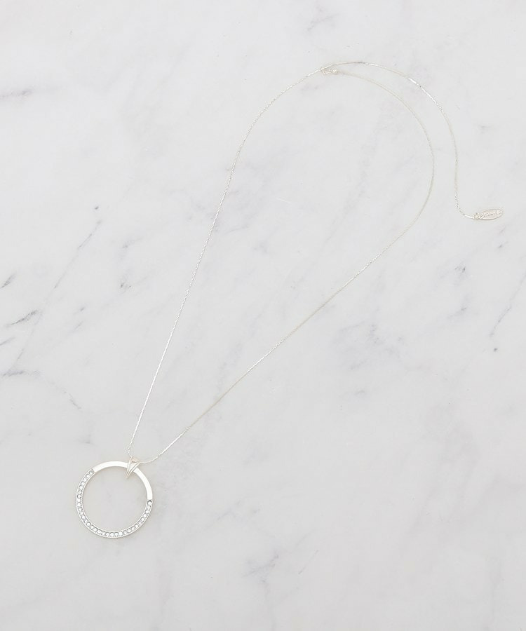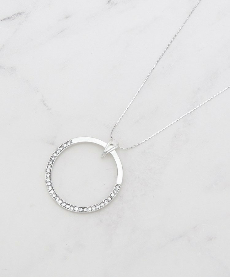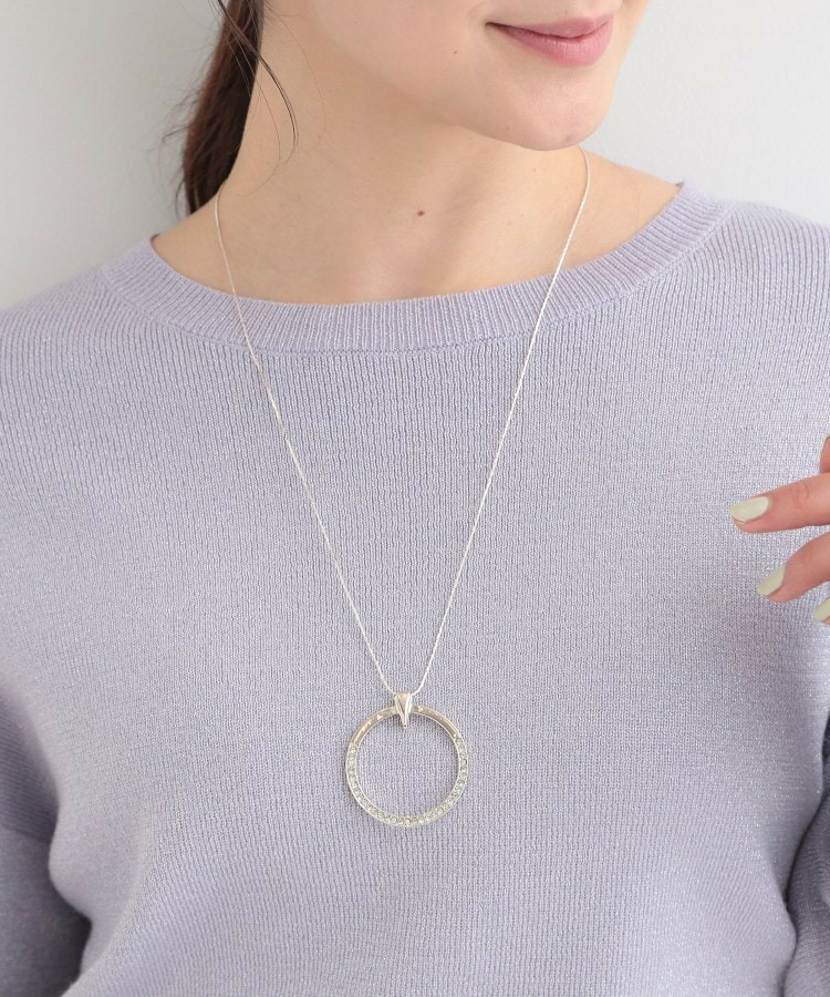 ミニマルなフォルムはVネックやクルーネックなど幅広いネックラインと相性が良く、一点で首元に上品なアクセントを添えます。