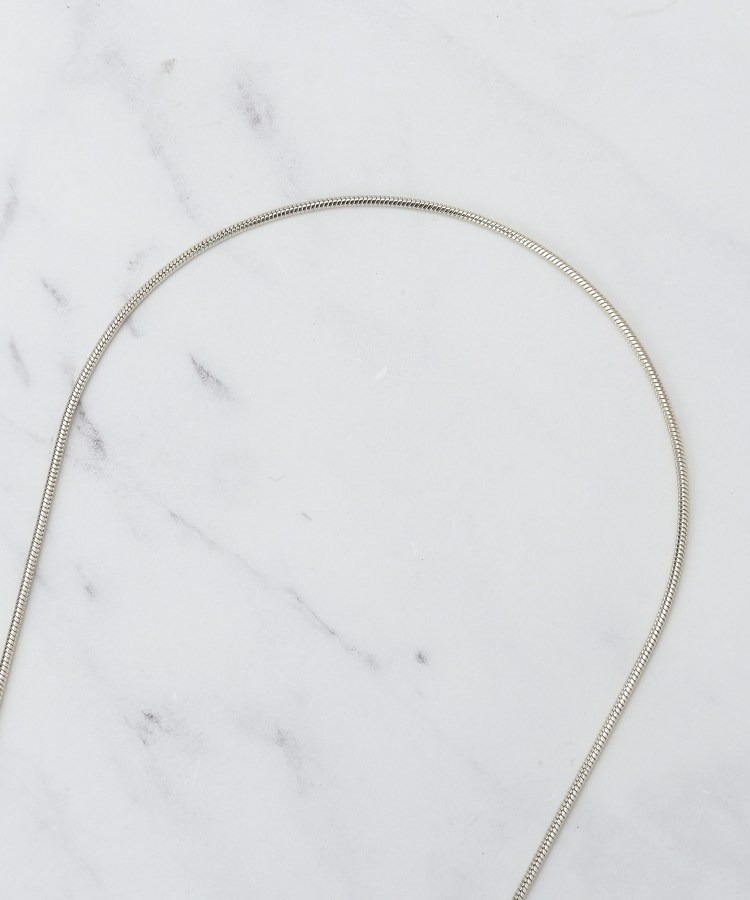 鏡面の光沢と細かな凹凸が交差して立体感を生み、シンプルながら存在感のある首元を演出します。