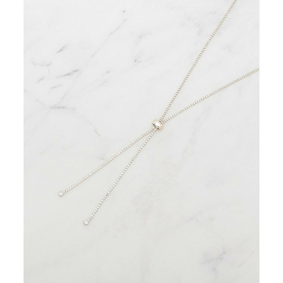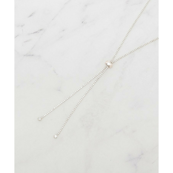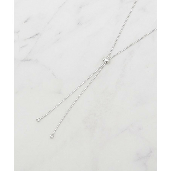 中央のメタルスライドパーツでトップの高さを自由に調整でき、Y字に落ちる両端の小さなストーンが動くたびにさりげない存在感を放ちます。