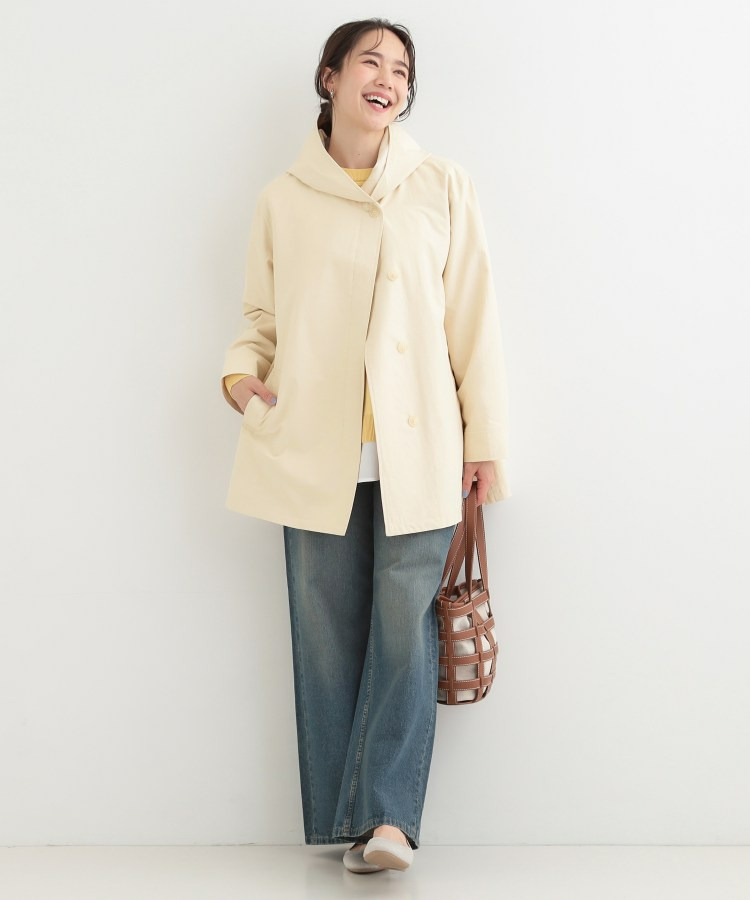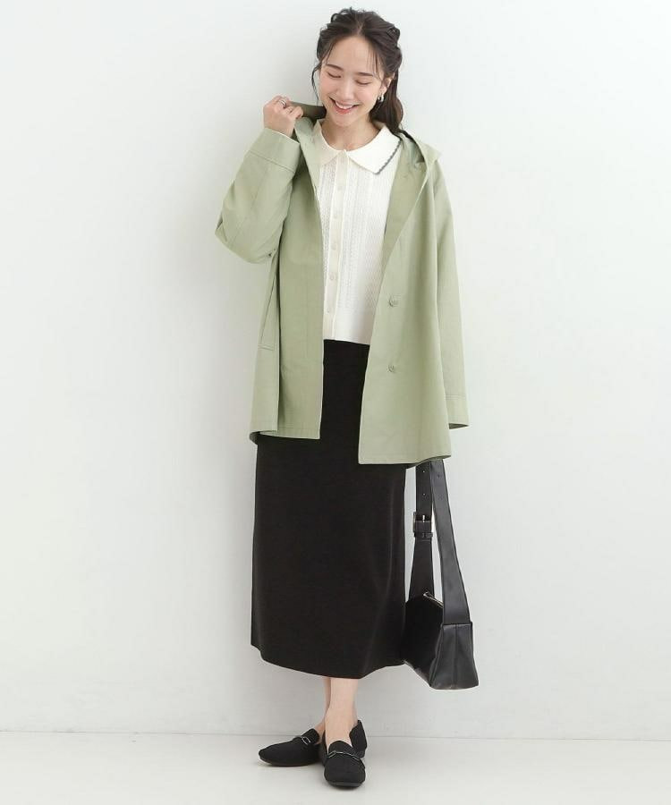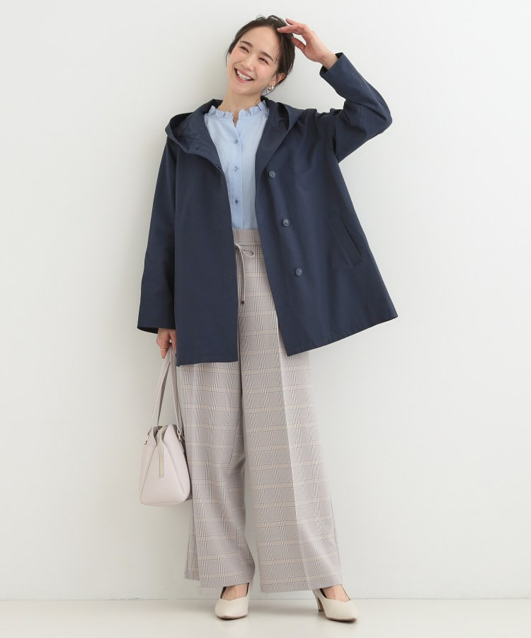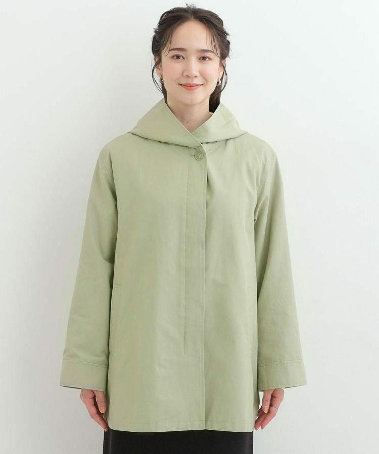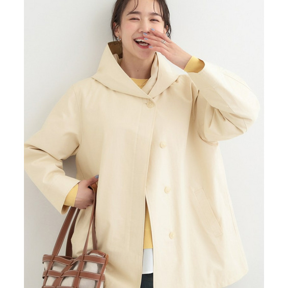 大人の着こなしにぴったりな、大きめなフードデザインで軽やかに羽織れて、ゆったりサイズ感ですので、まだ寒い時期にはニットを中に着られます。