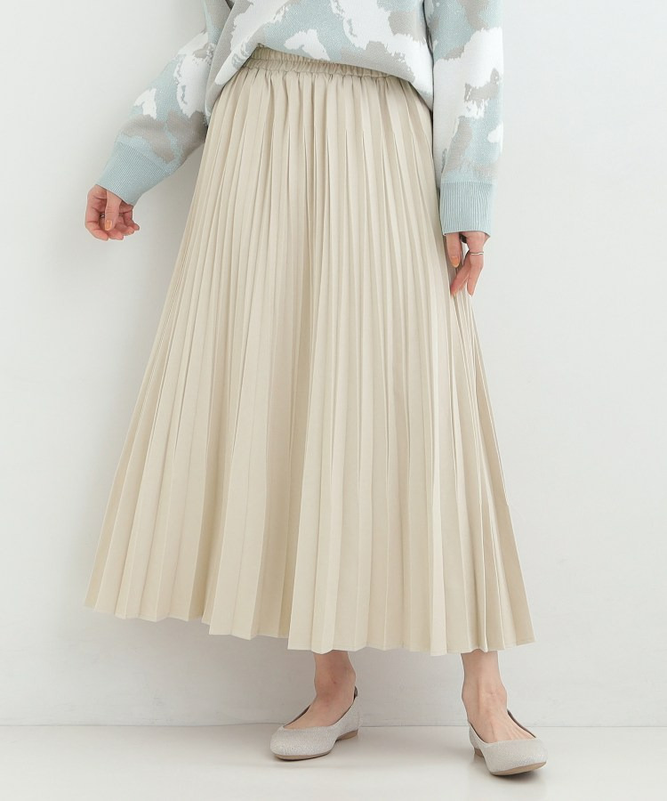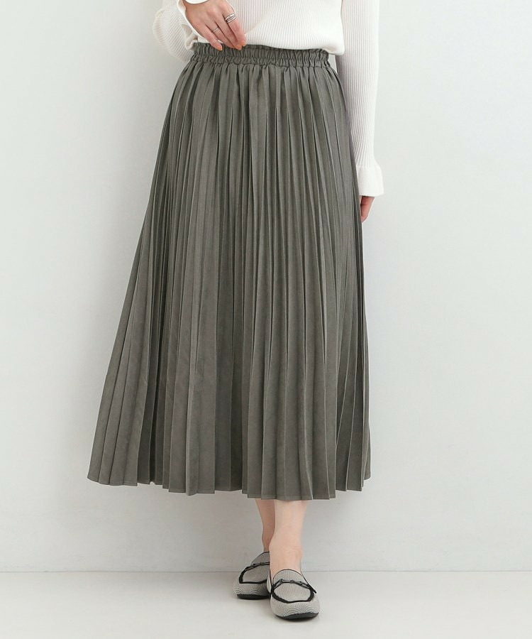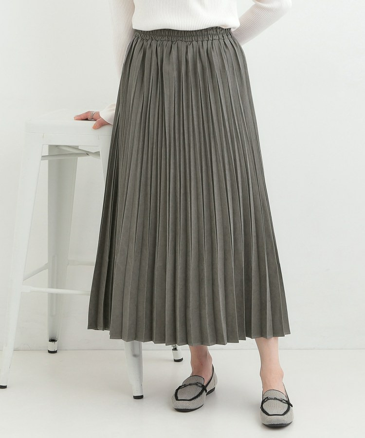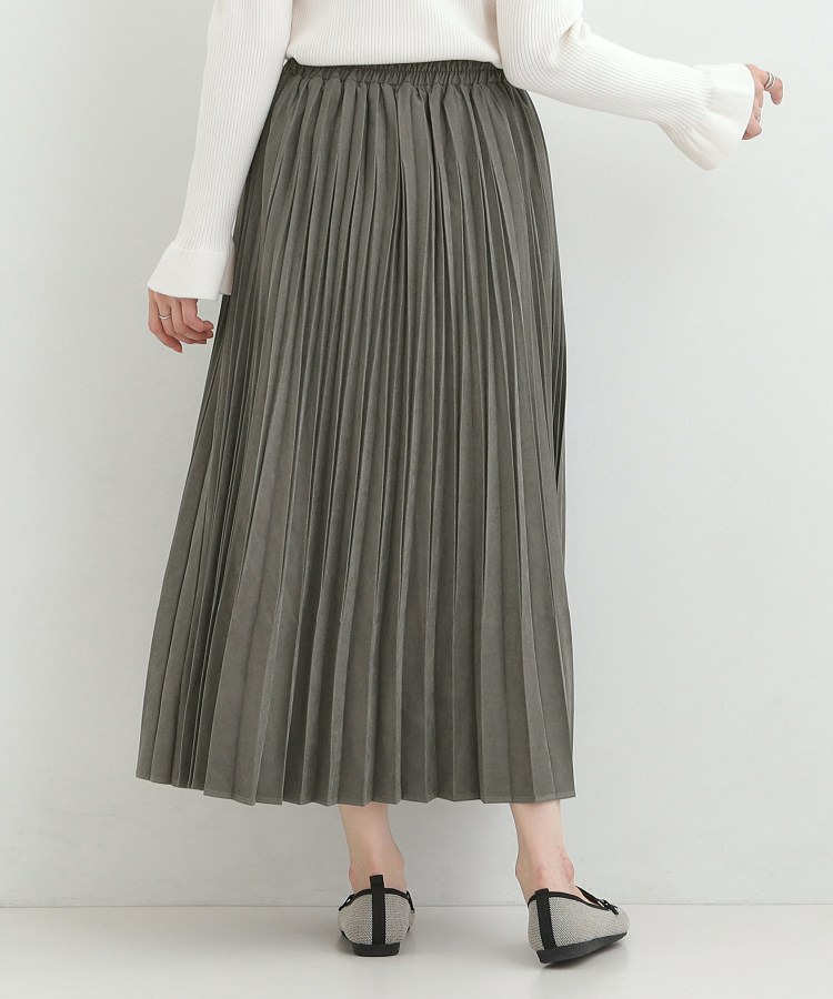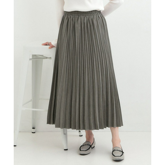 【洗濯機可/S-LL】縦ラインですっきり見せる スエードライクプリーツスカート