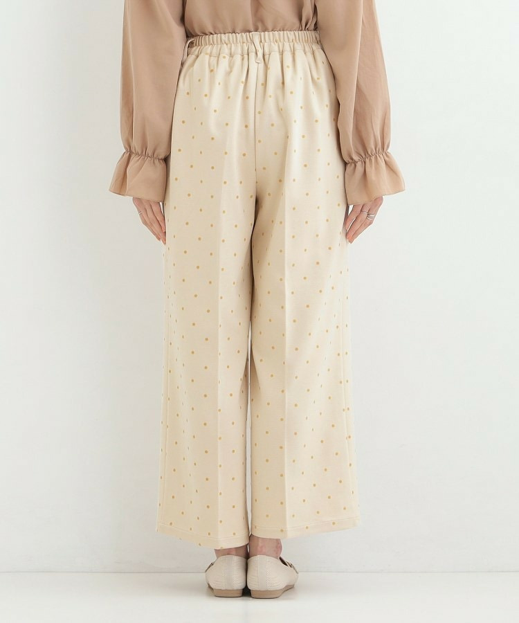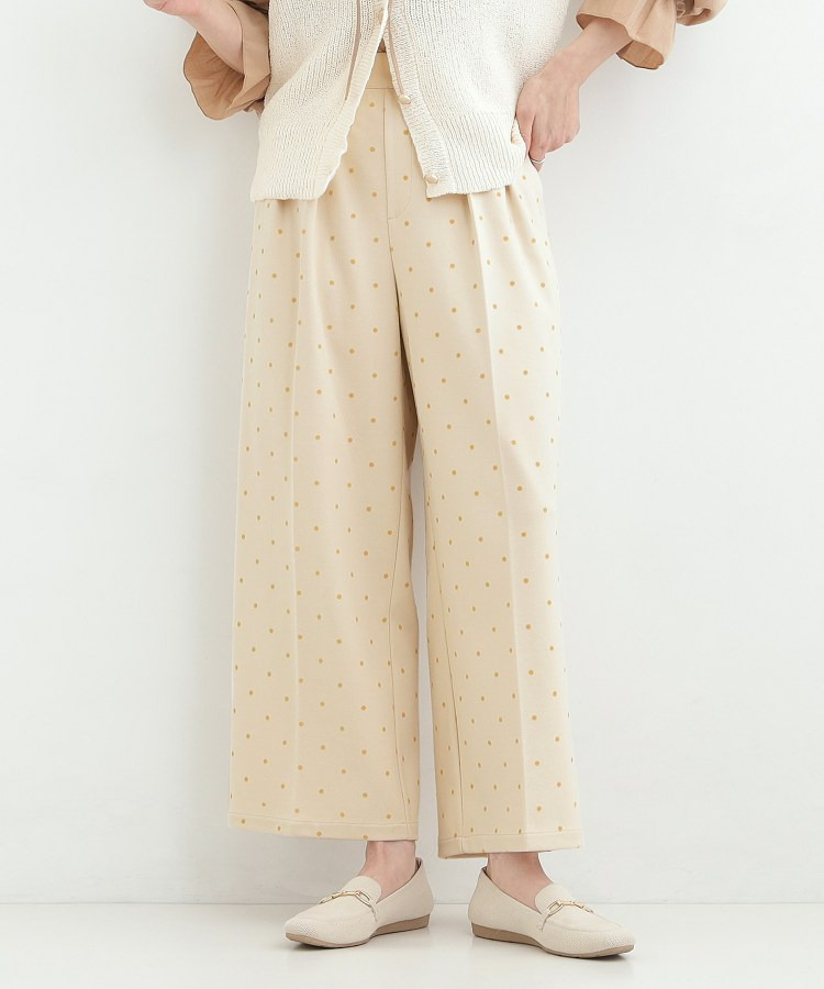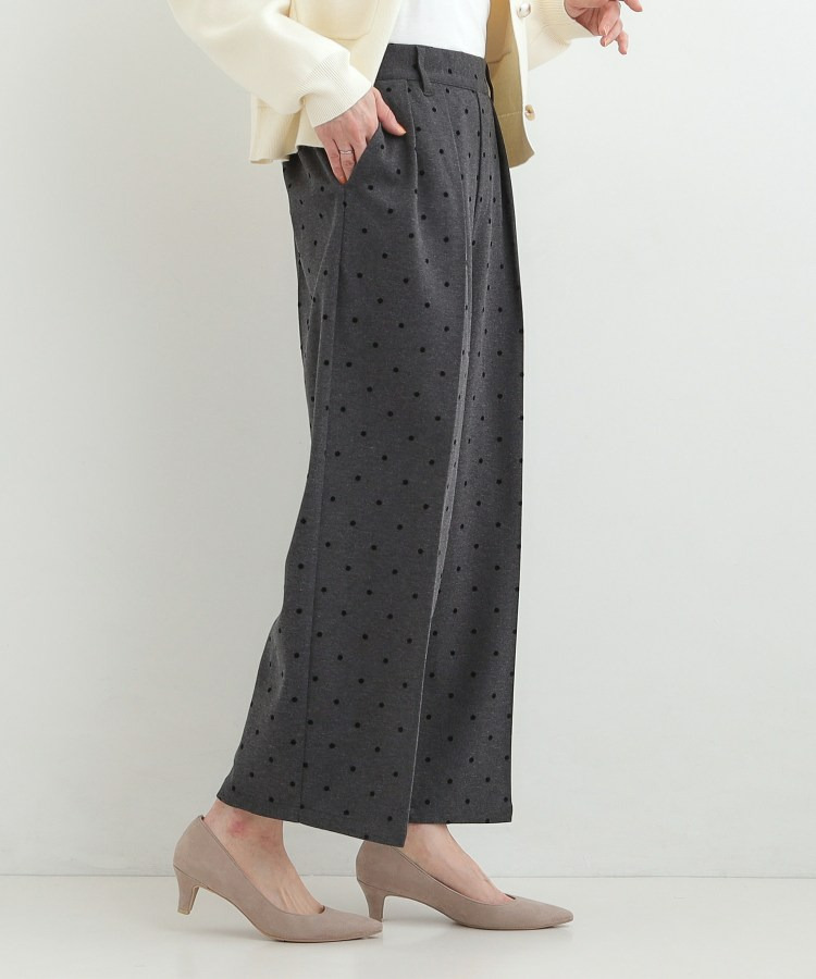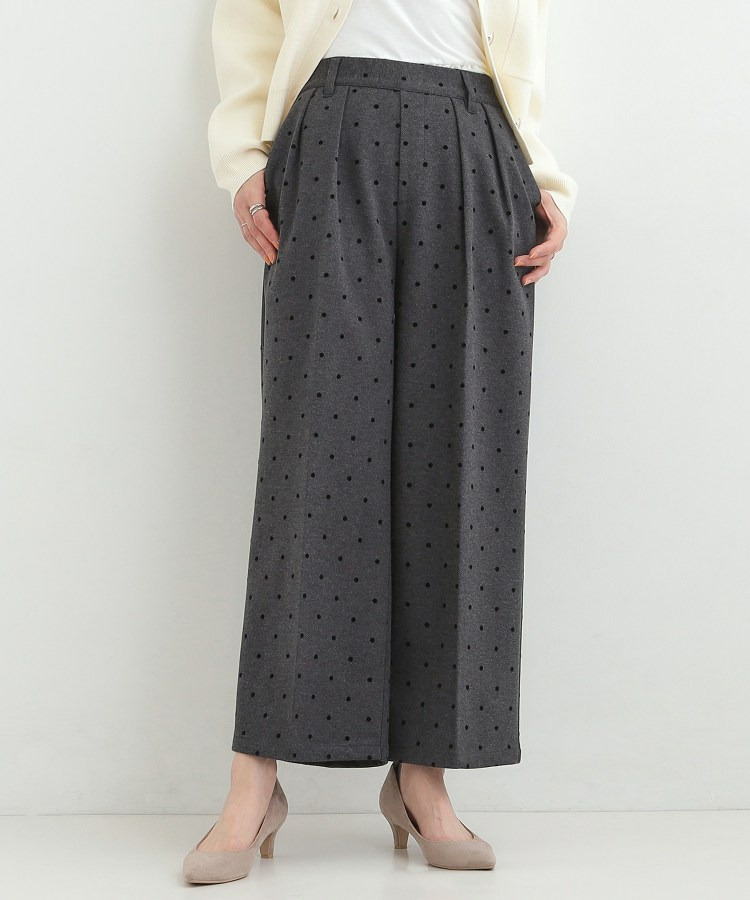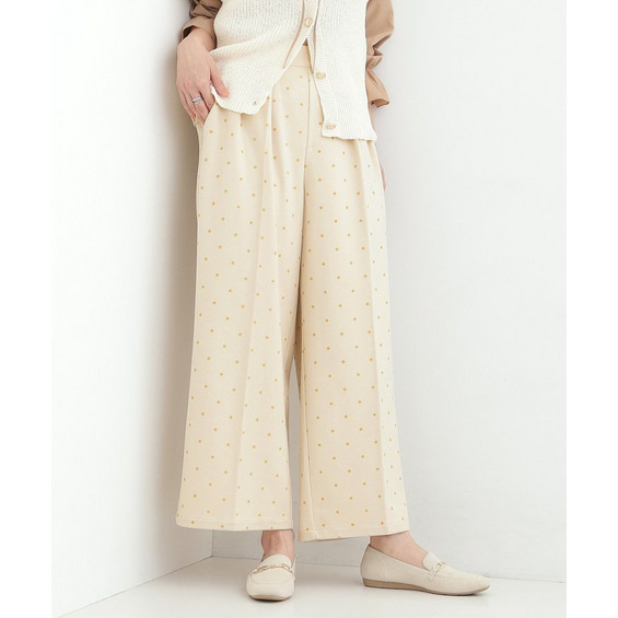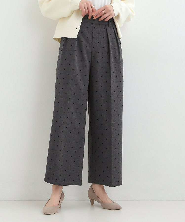 フロッキードット柄がアクセントになったワイドパンツ。
