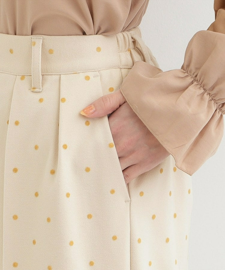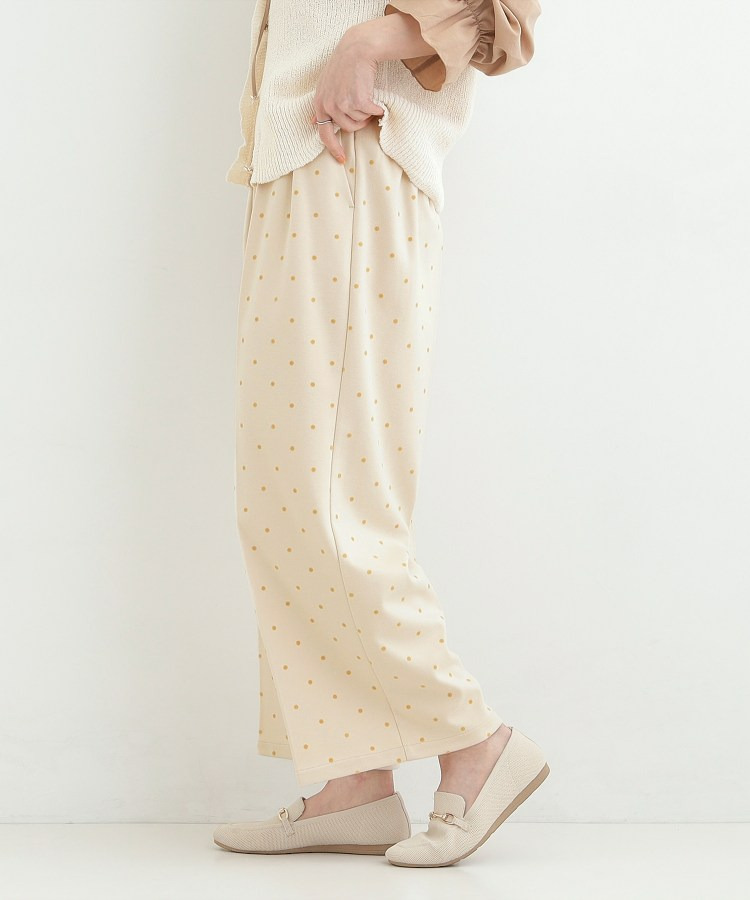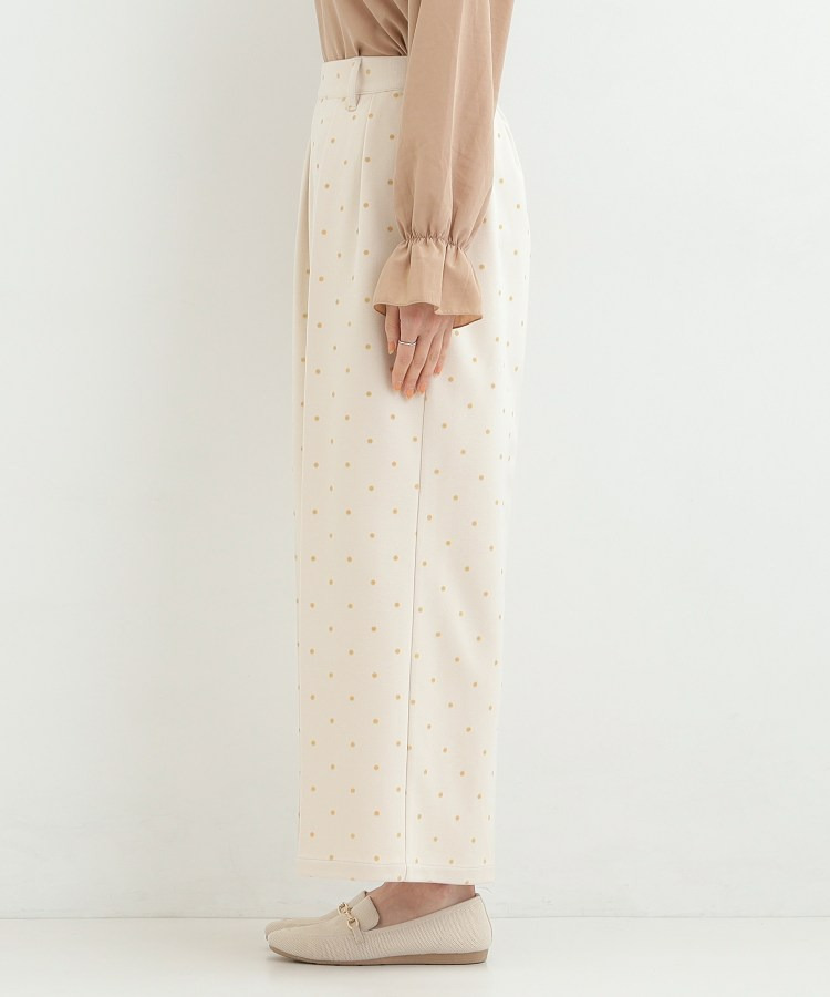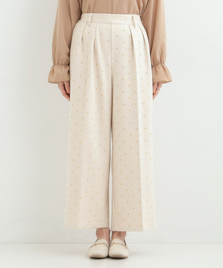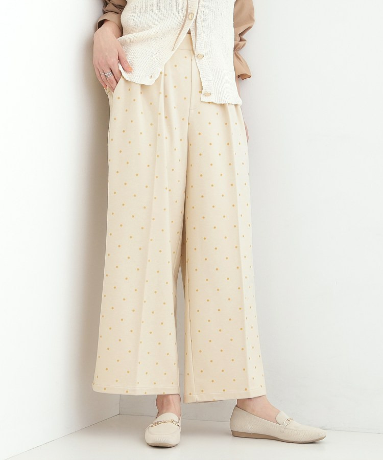 フロッキードット柄がアクセントになったワイドパンツ。