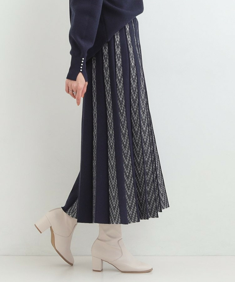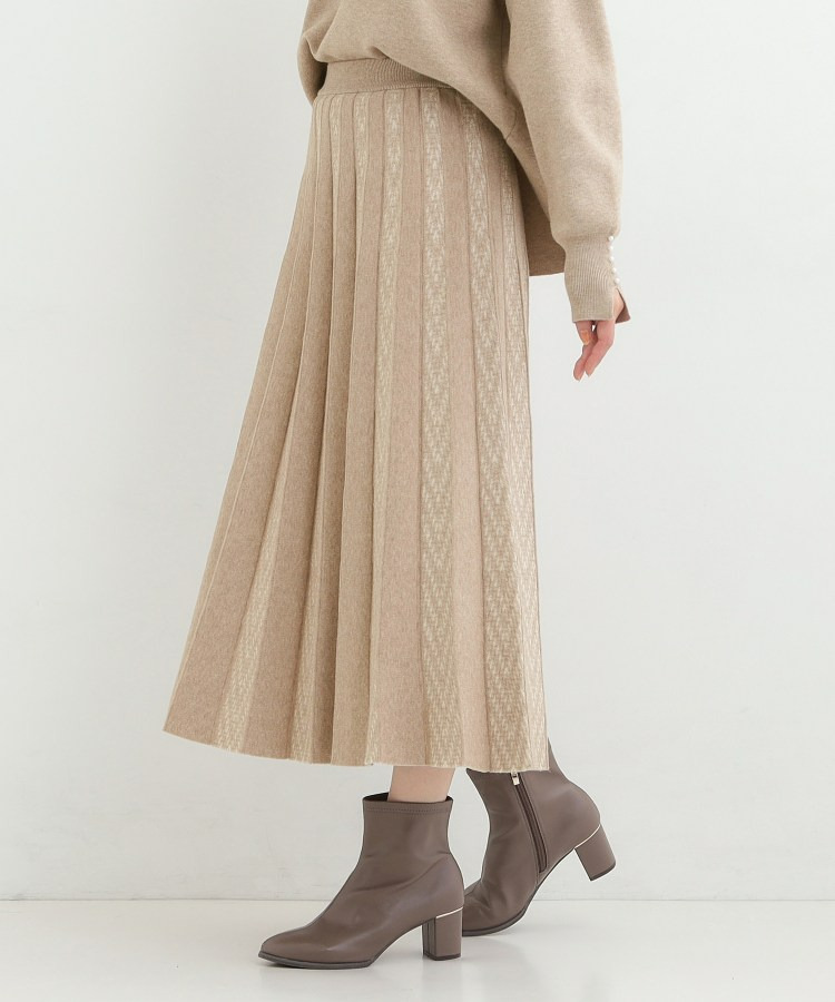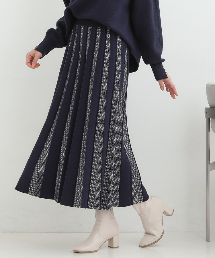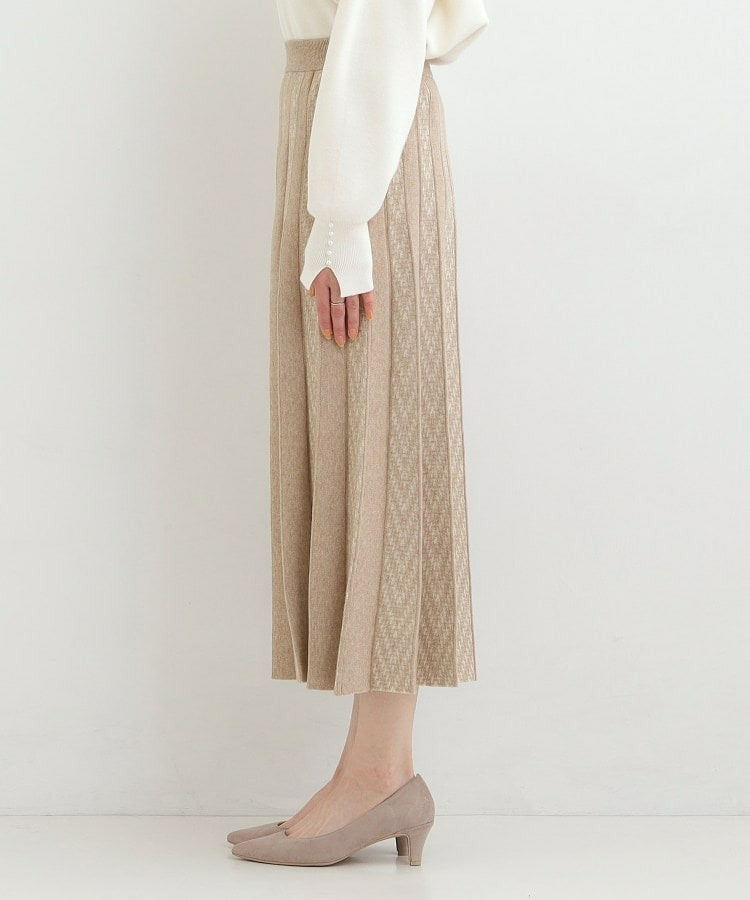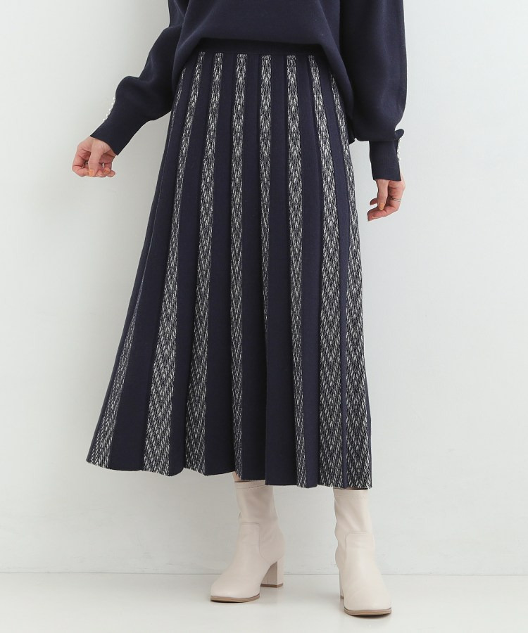 女性らしくフェミニンな印象を与えてくれる、ジャカード織のニットスカート。
