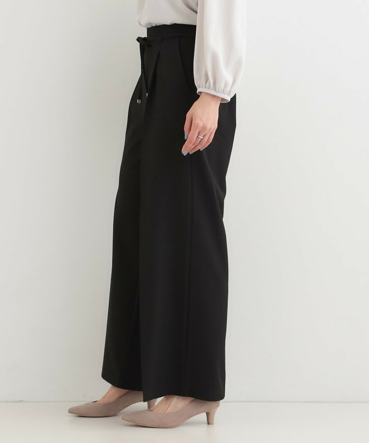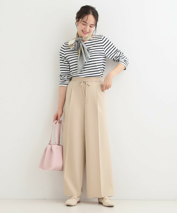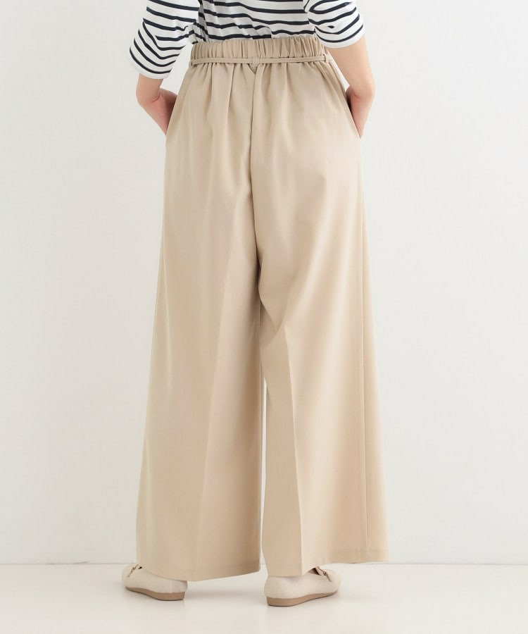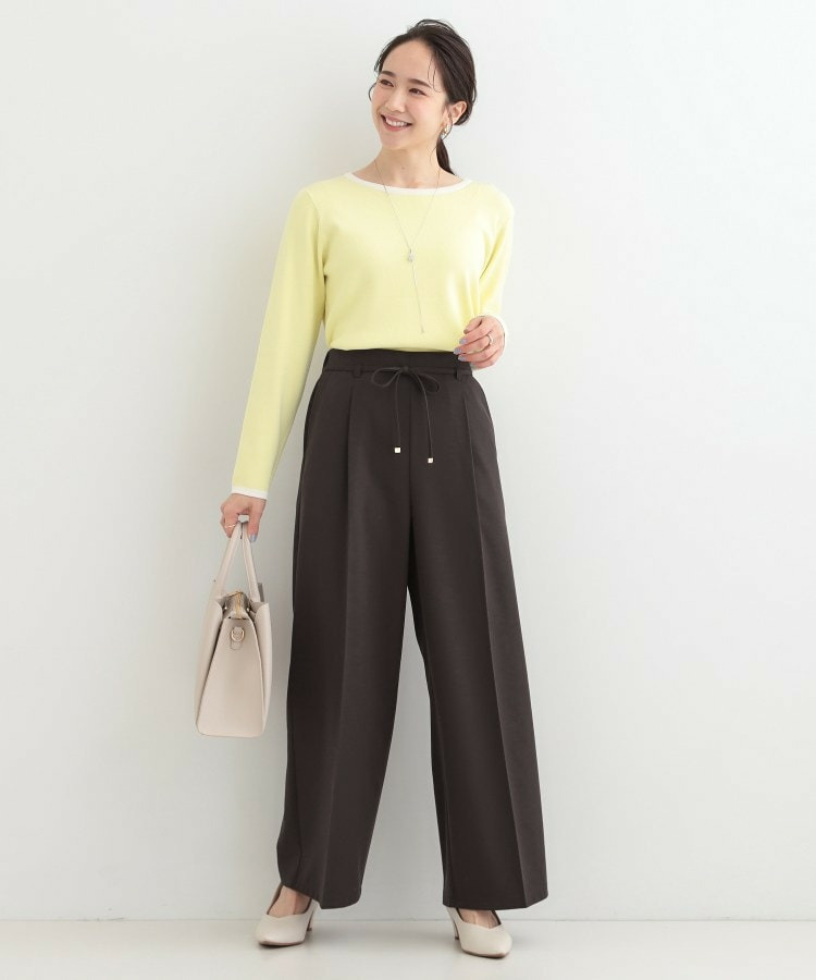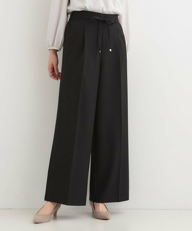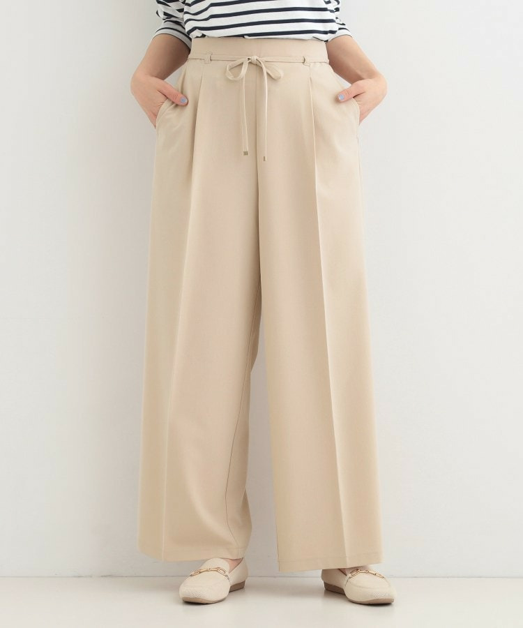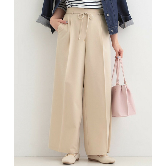 イージーパンツながら、ウエストのリボンディティールとセンタープレスがきちんと見えするデザイン。
